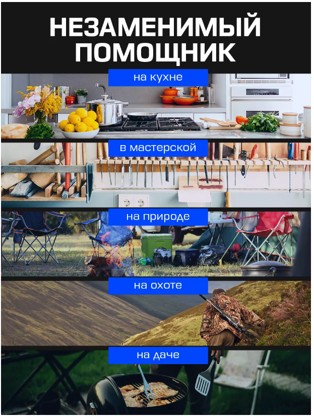 | Использование | для ножниц / для охотничьих ножей / для поварских ножей / для серрейторных лезвий / для складных ножей / для филейных ножей / для хлебных ножей / заточка двойная-линзовидная / заточка односторонняя |