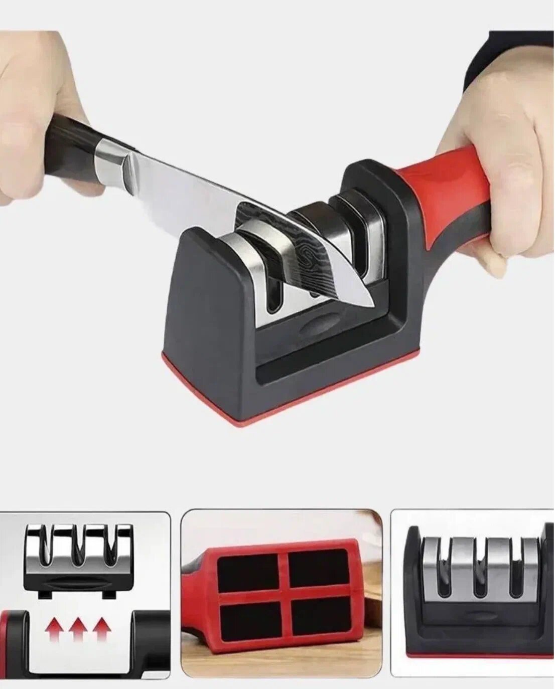Купить Точилка механическая Sharpener / ножеточка / двусторонняя заточка / станок / для ножей и ножниц / шлифовка / для кухни / 3 этапная заточка / ручная/ Точилка для ножей с 3 - х этапной системой заточки / Ножеточка ручная с 3 режимами