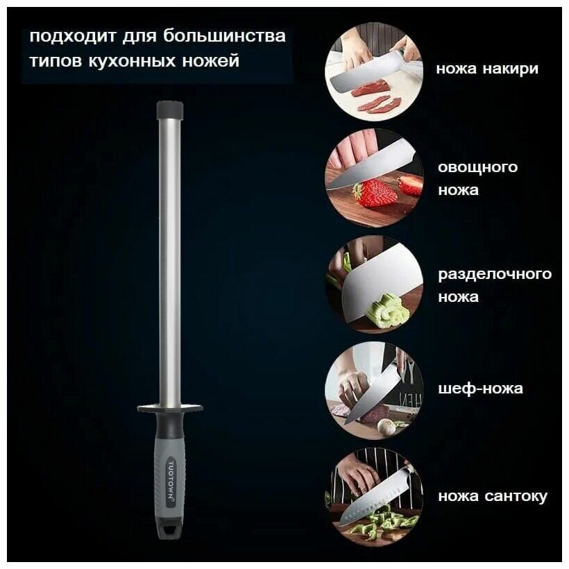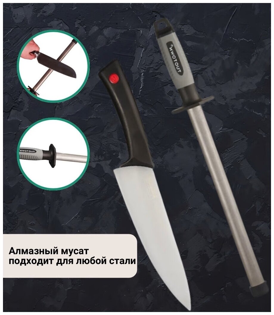 Мусат для заточки, керамический 1000 грит Tuotown, круглый 25 cм