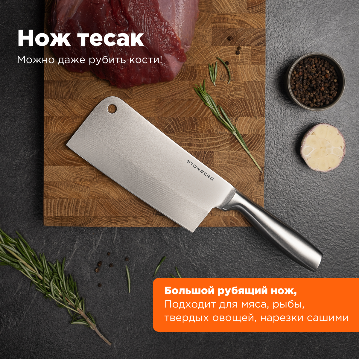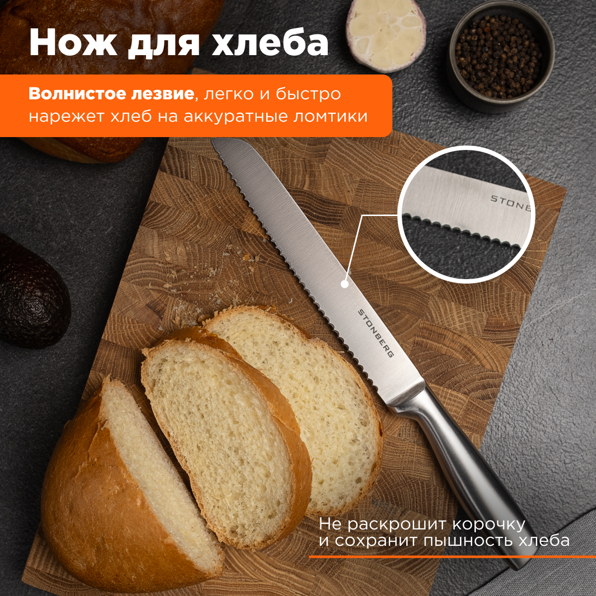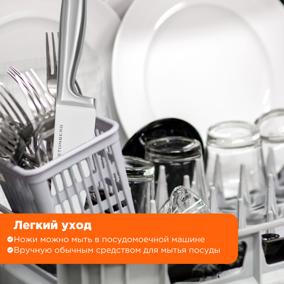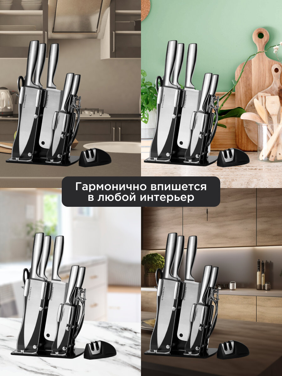 Набор стальных кухонных ножей на подставке Stonberg KS-101-SL, 8 в 1 сталь/черный интересное: