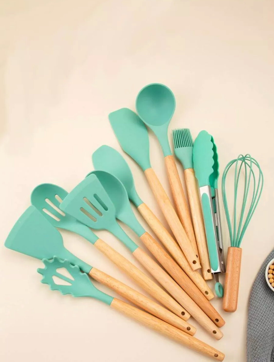 Аксессуары для кухни для приготовления/ ножи и столовые приборы на подставке / подарочный кухонный набор 19 предметов цвет зеленый интересное: