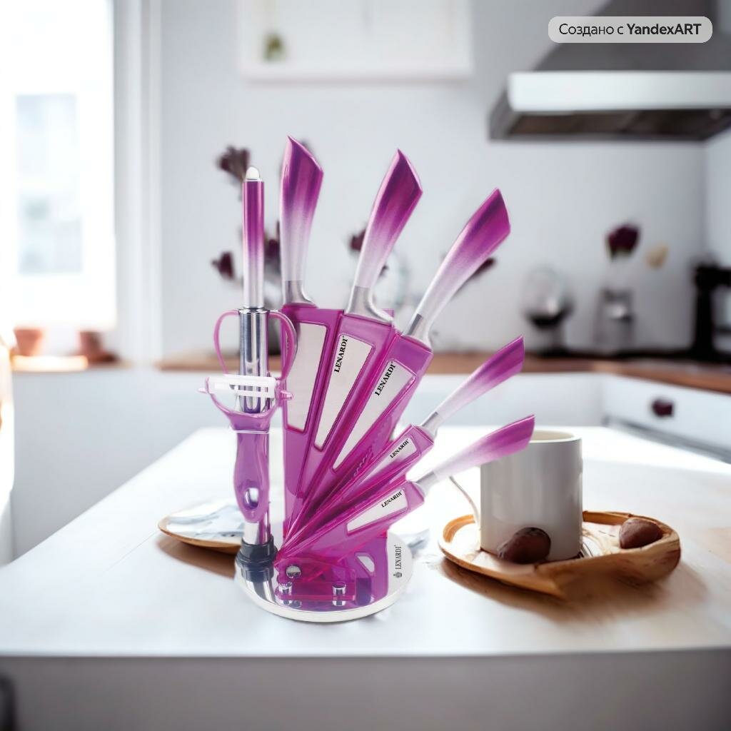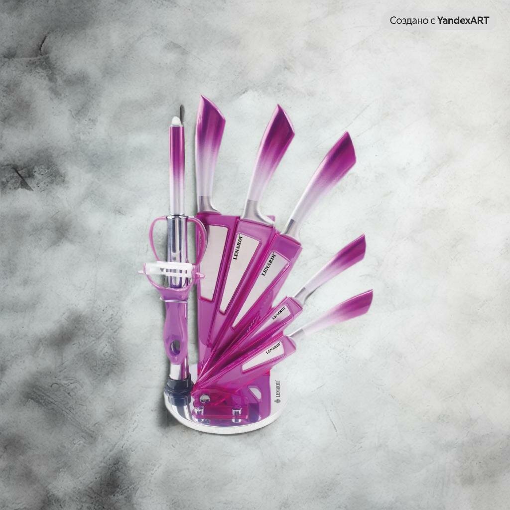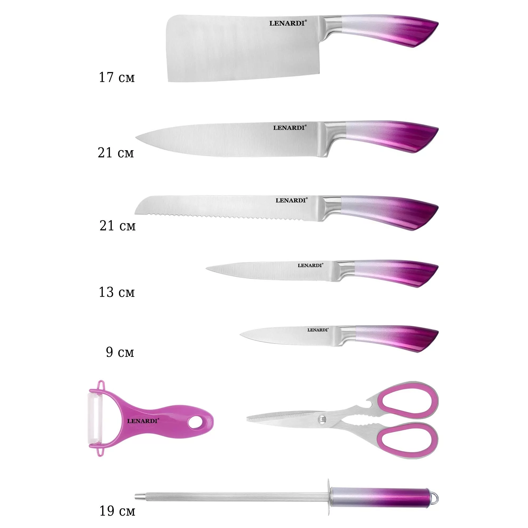 Набор 9 предметов Ножи Ленарди ножницы, мусат, овощечистка, подставка, нержавеющая сталь