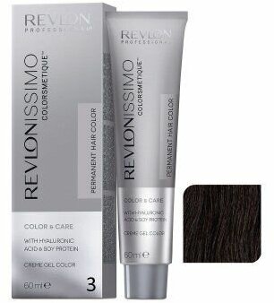 Краска для волос Revlon Professional Coloring Hair Revlonissimo Colorsmetique Care & Shine, Краситель с гиалуроновой кислотой перманентный. Перманентный Краситель с Гиалуроновой кислотой, Гарантия Результата Окрашивания + Уход за Волосами, 3