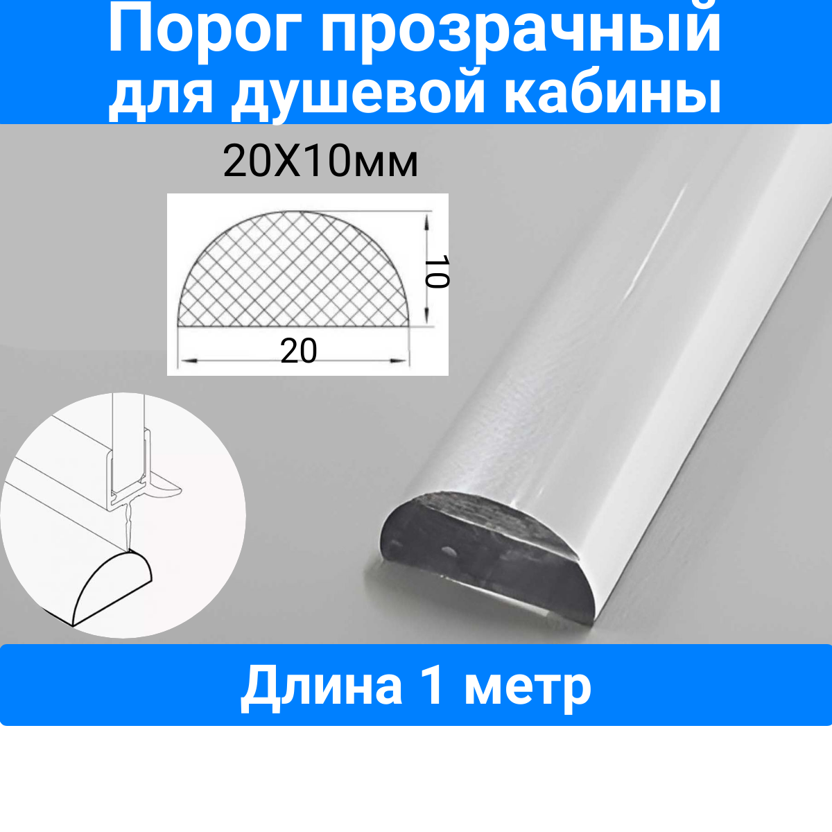 Порог для душевой кабины,P-01-20 прозрачный 20х10mm, длина 1 метр интересное: