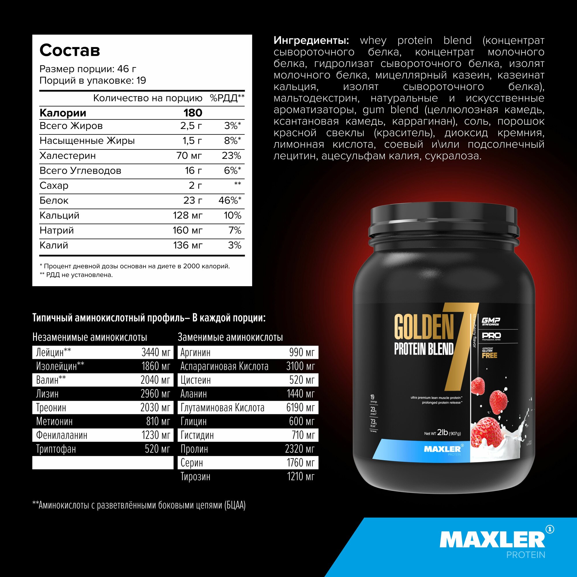 Купить MAXLER USA Golden 7 Protein Blend 2lb Малая банка (Strawberry)