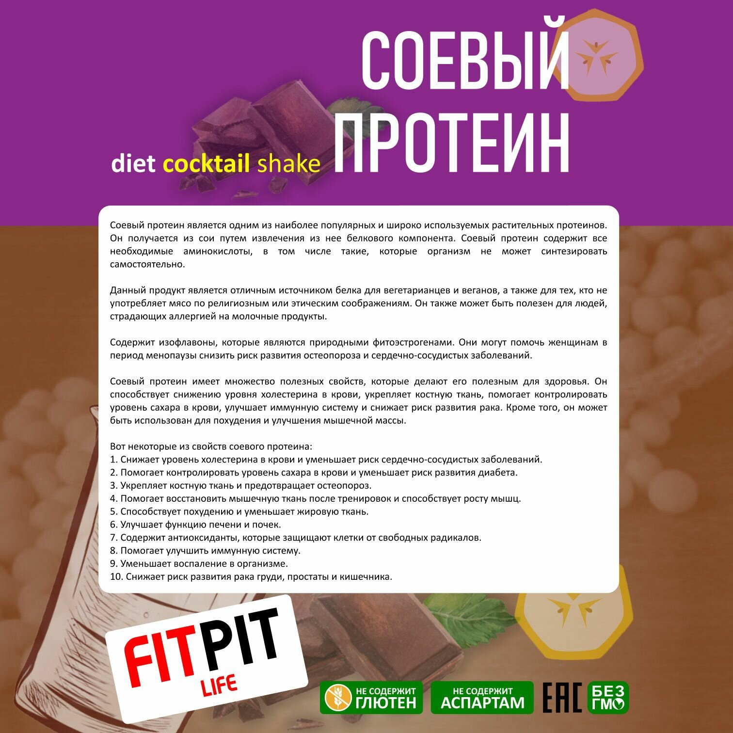 Купить FITPIT Соевый протеин (Изолят соевого белка) без добавления других растительных белков 900 гр Шоколад