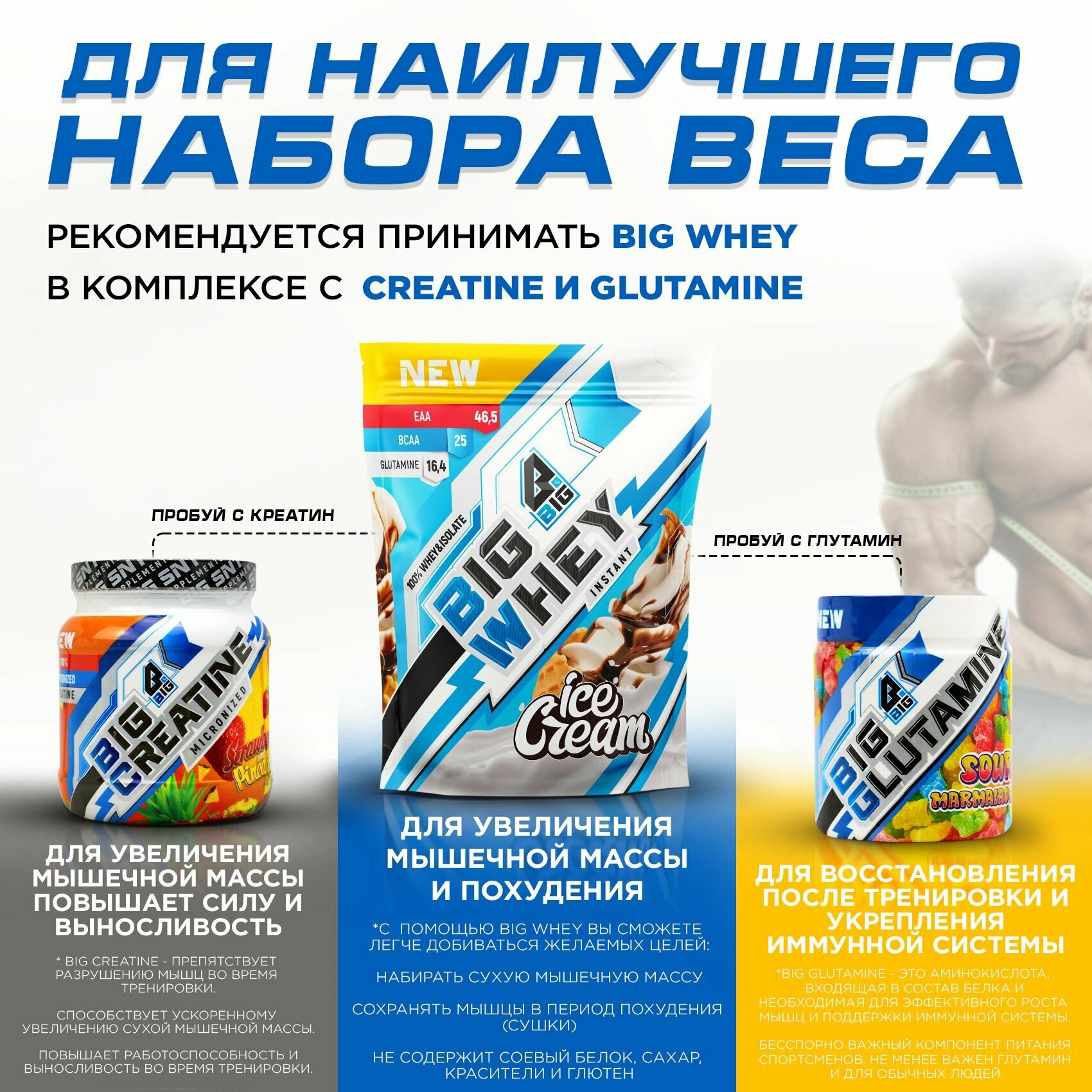 Ниже Вы можете прочитать отзывы на Протеин BIGSNT BIG WHEY сывороточный со вкусом мороженого для набора мышечной массы, похудения, сушки/ спортивное питание, 448 г, 14 порций, ознакомится с подробными характеристиками, посмотреть интересные обзоры и фотографии на Протеин BIGSNT BIG WHEY сывороточный со вкусом мороженого для набора мышечной массы, похудения, сушки/ спортивное питание, 448 г, 14 порций.