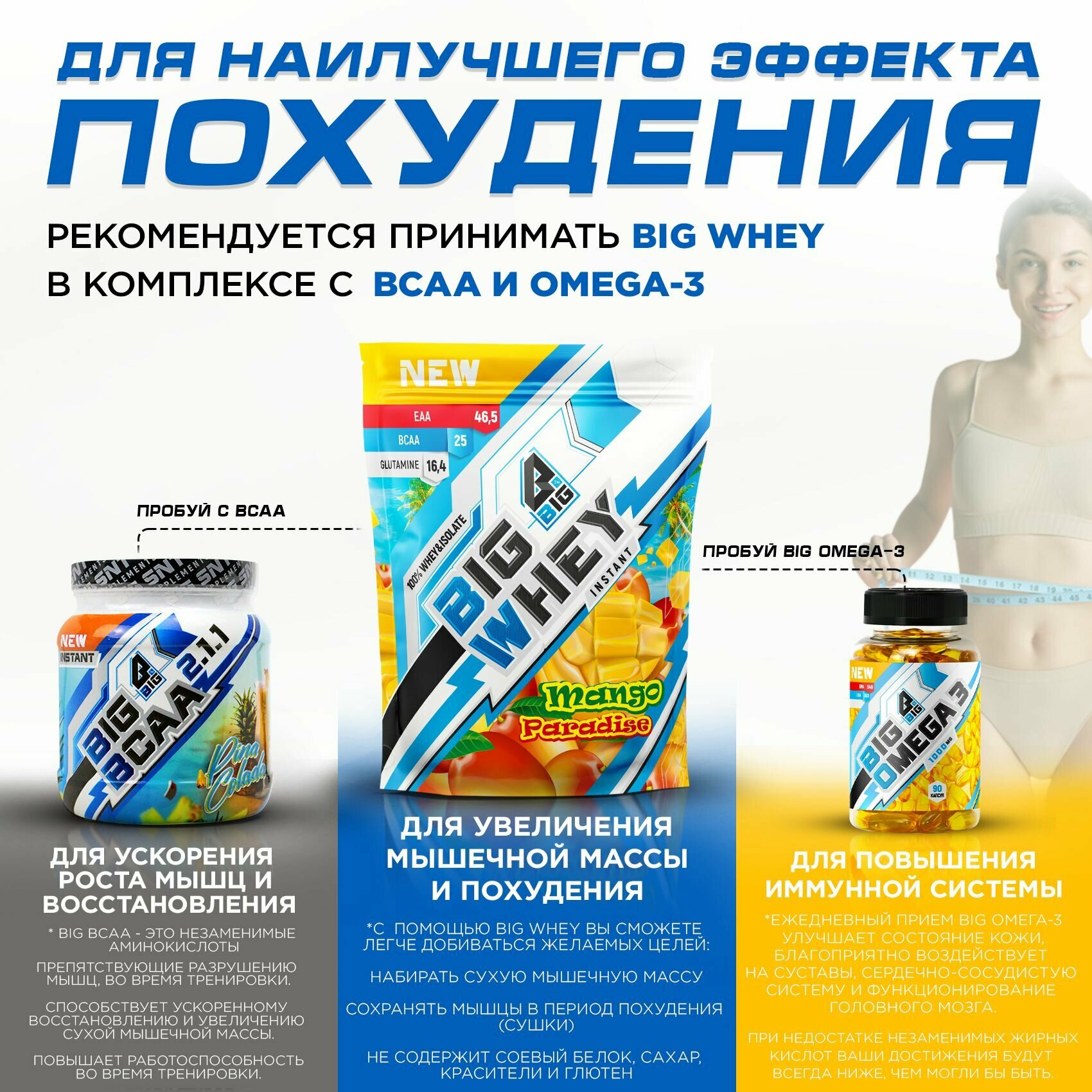 Купить Протеин BIGSNT BIG WHEY сывороточный со вкусом манго для набора мышечной массы, похудения, сушки/ спортивное питание, 900 г, 28 порций