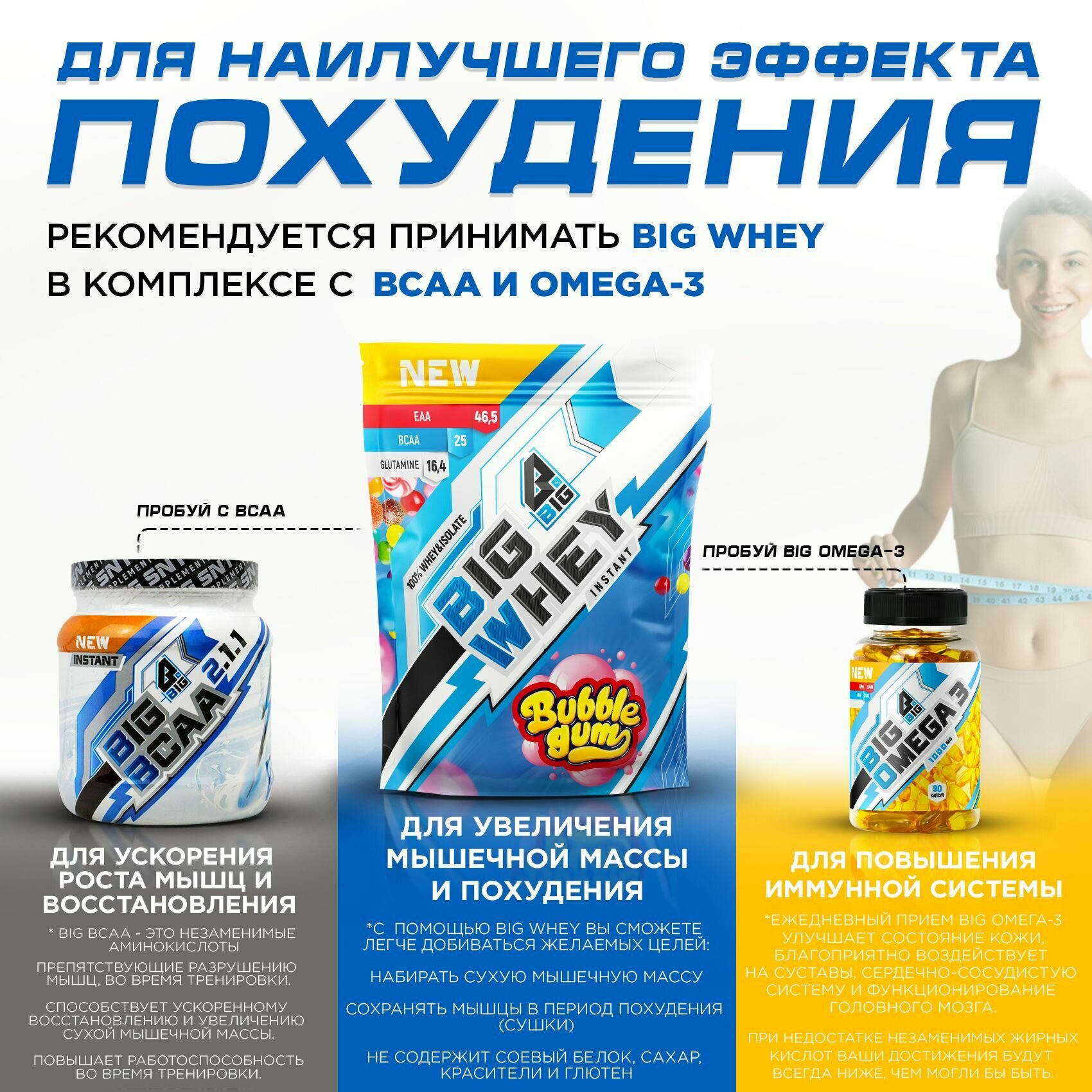 Ниже Вы можете прочитать отзывы на Протеин BIGSNT BIG WHEY сывороточный со вкусом Бабл-гам для набора мышечной массы, похудения, сушки/ спортивное питание, 900 г, 28 порций, ознакомится с подробными характеристиками, посмотреть интересные обзоры и фотографии на Протеин BIGSNT BIG WHEY сывороточный со вкусом Бабл-гам для набора мышечной массы, похудения, сушки/ спортивное питание, 900 г, 28 порций.