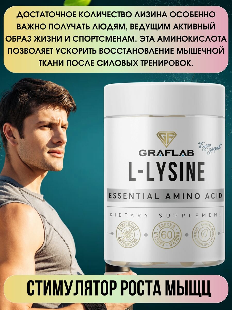 Лизин (L-Lysine) GraFLab, аминокислота 1320 мг, капсулы, 60 штук