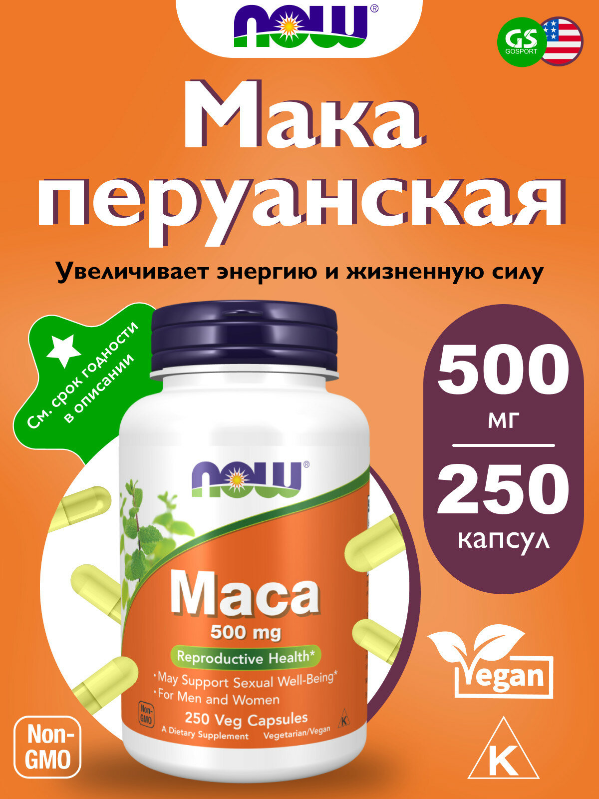 MAKA NOW FOODS Maca 500 mg 250 веган капсул интересное: