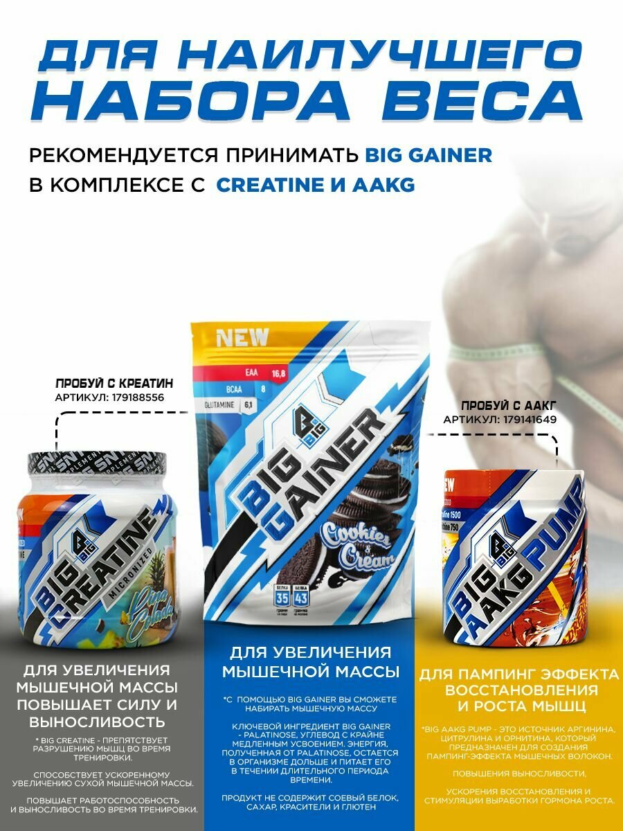 Купить Гейнер BIGSNT BIG GAINER для набора мышечной массы высокобелковый, со вкусом печенье Орео / спортивное питание, 1.5 кг