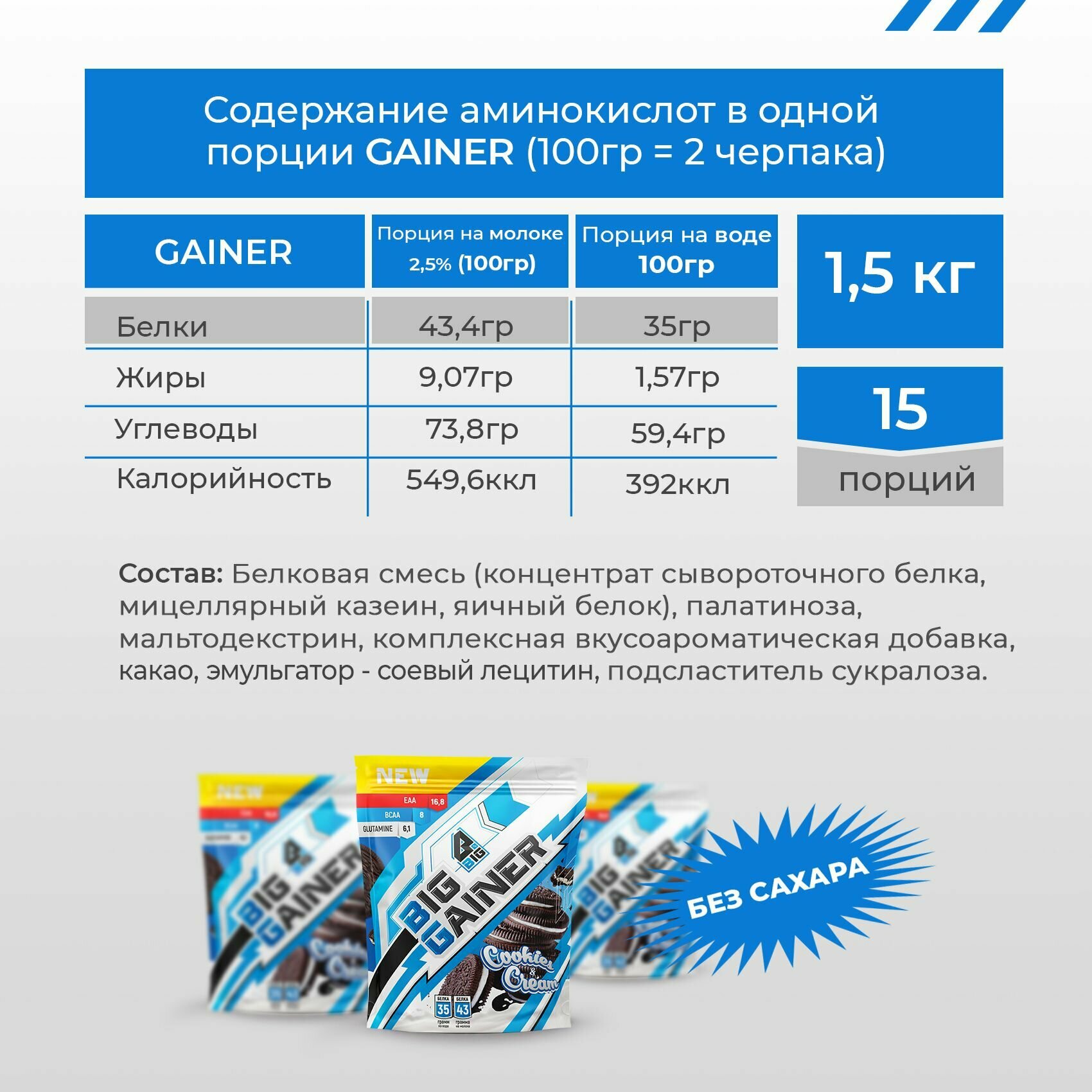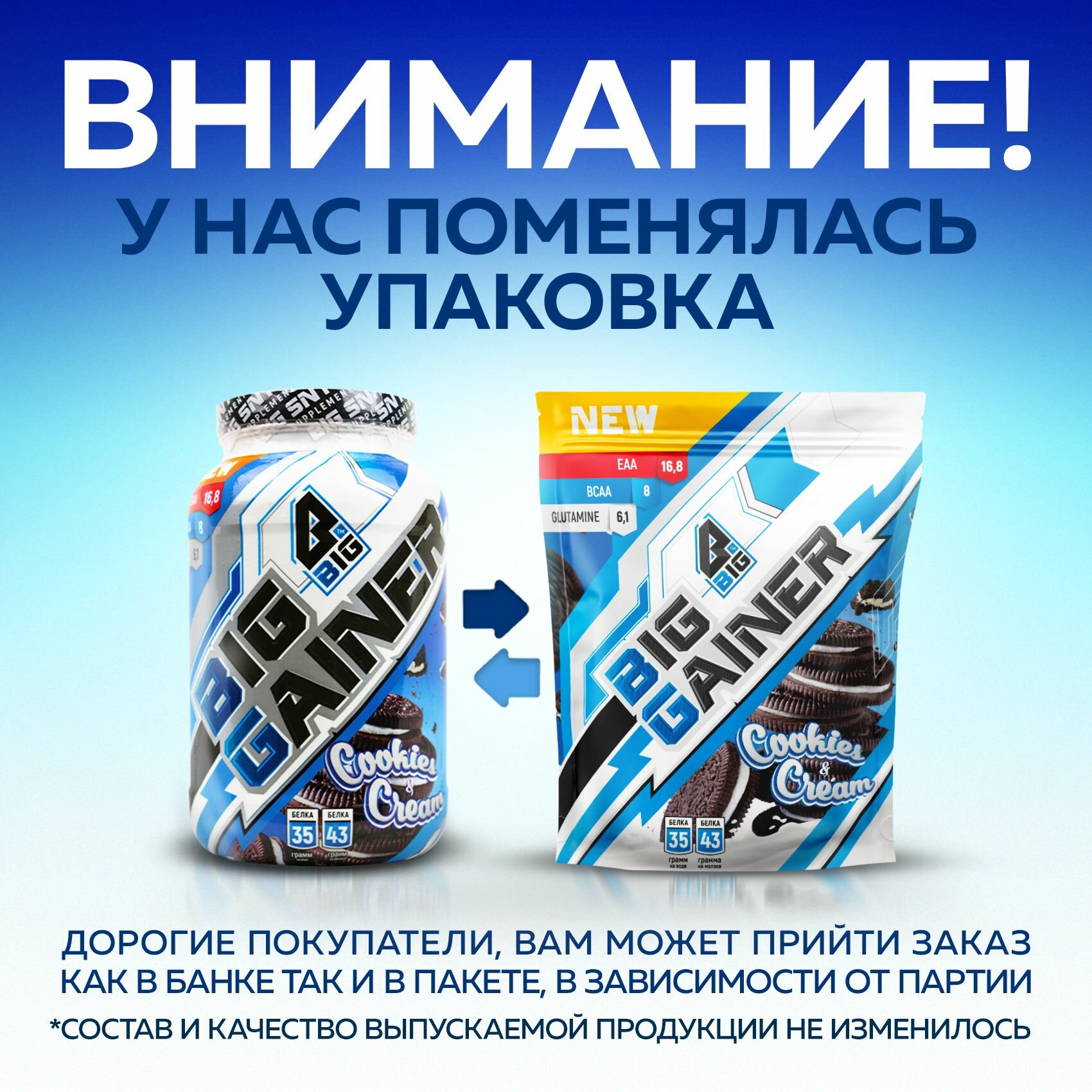 СохранитьГейнер BIGSNT BIG GAINER для набора мышечной массы высокобелковый, со вкусом печенье Орео / спортивное питание, 1.5 кг интересное: