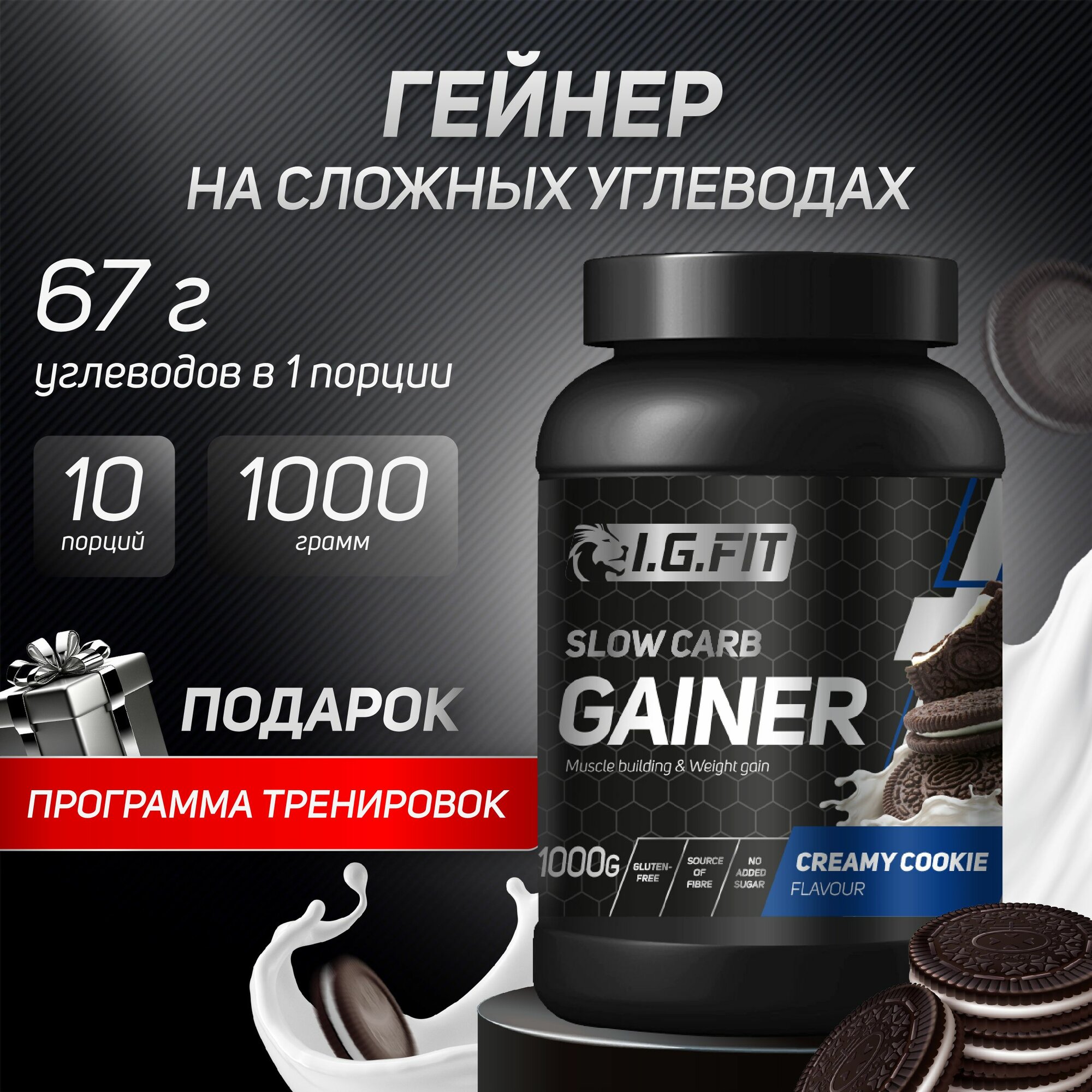 Гейнер I.G.FIT PLATINUM на сложных углеводах для набора массы, печенье с кремом (орео) 1000 гр / 10 порций / банка