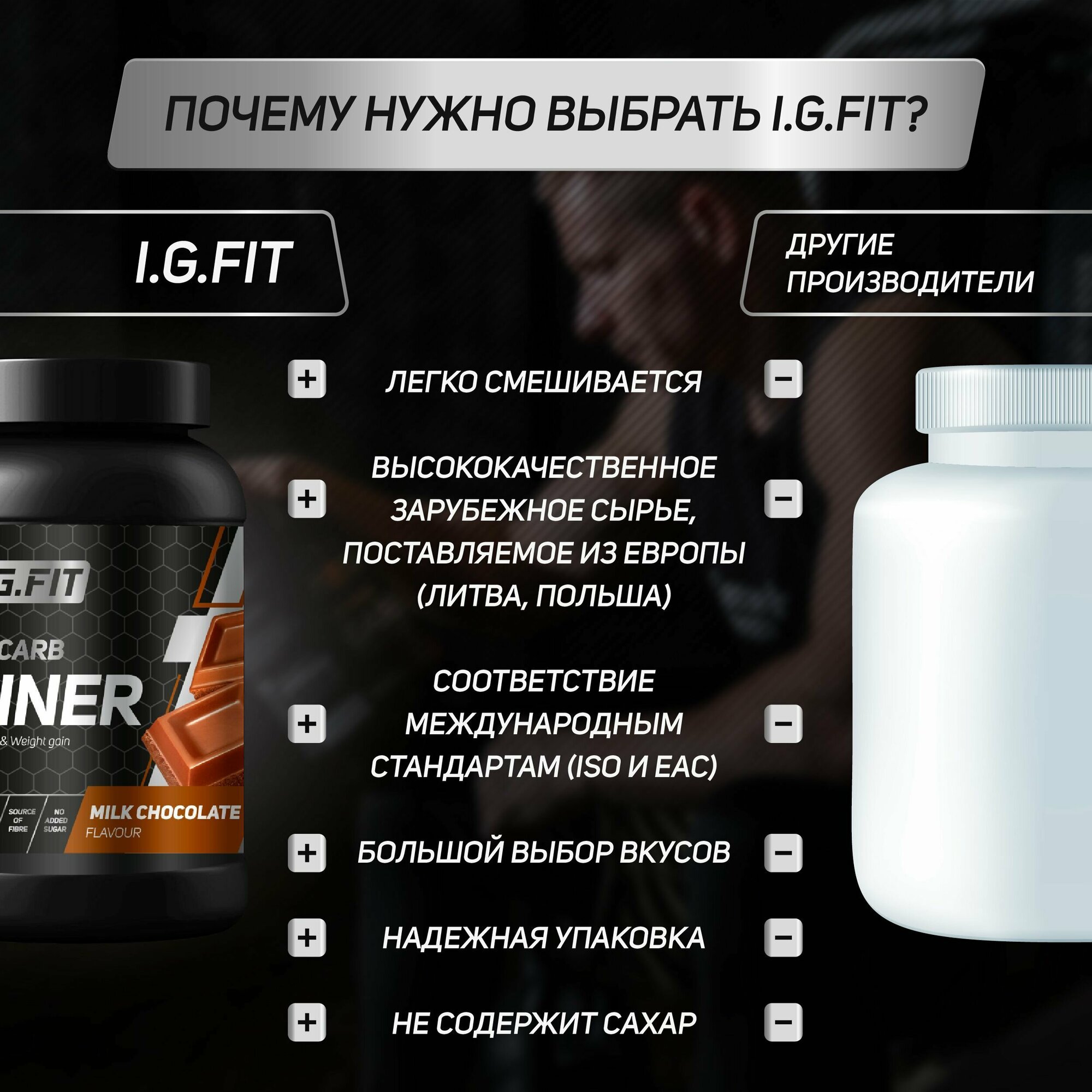 Купить Гейнер I.G. FIT на сложных (медленных) углеводах со вкусом молочный шоколад, 1000г (спортивное питание для набора веса и мышечной массы с мерной ложкой)