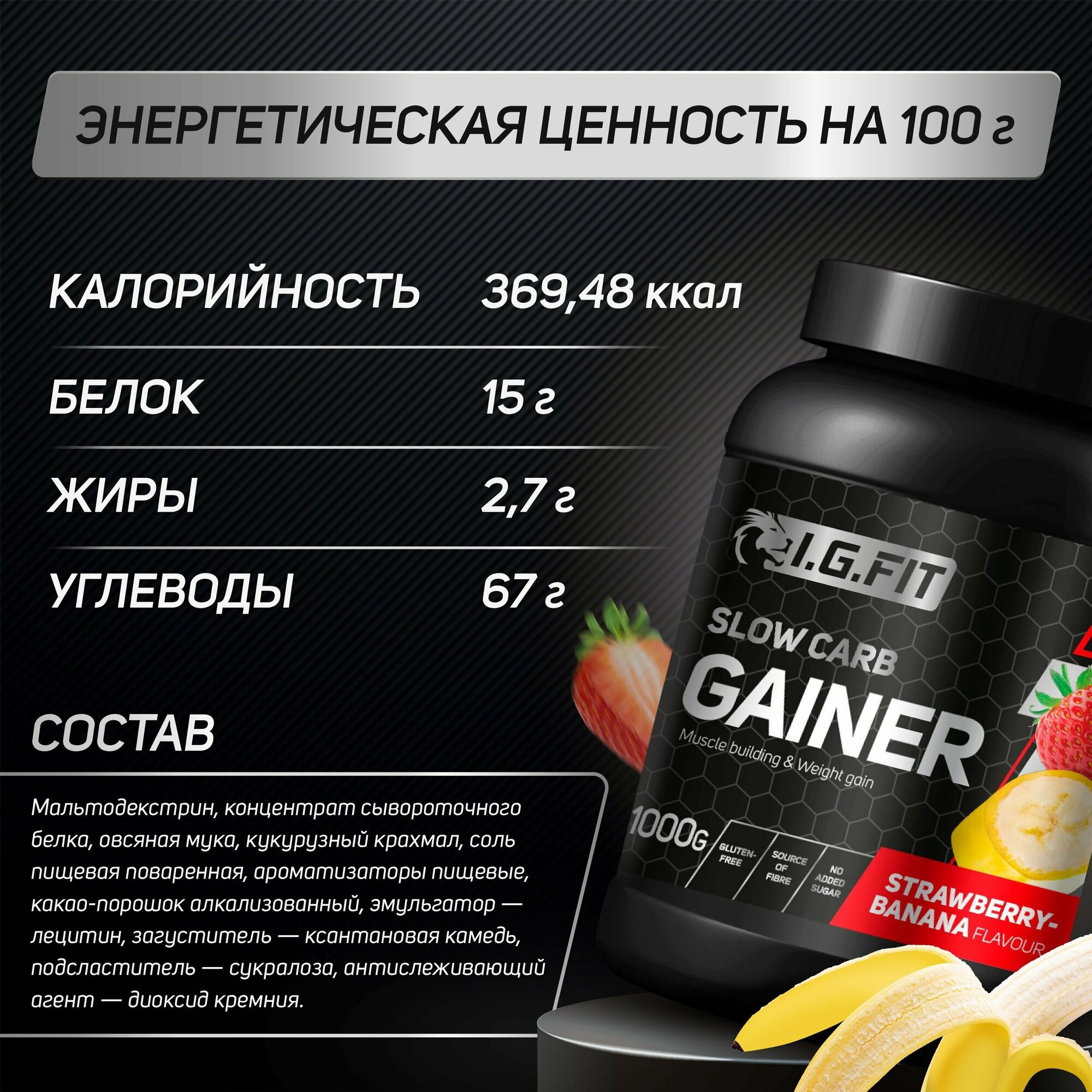 СохранитьГейнер I.G. FIT на сложных (медленных) углеводах со вкусом клубника-банан, 1000г (спортивное питание для набора веса и мышечной массы с мерной ложкой) интересное: