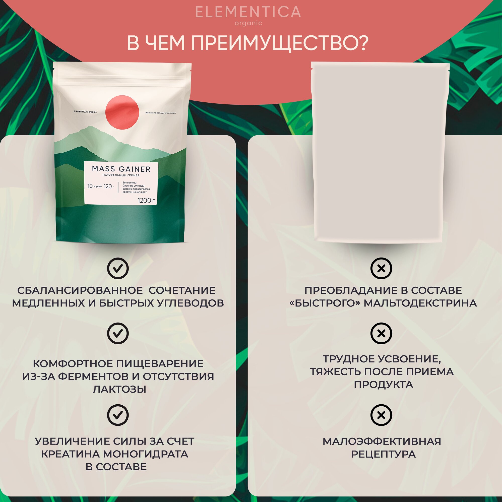 Гейнер ELEMENTICA для набора массы с креатином, 1 200 гр, банан интересное: