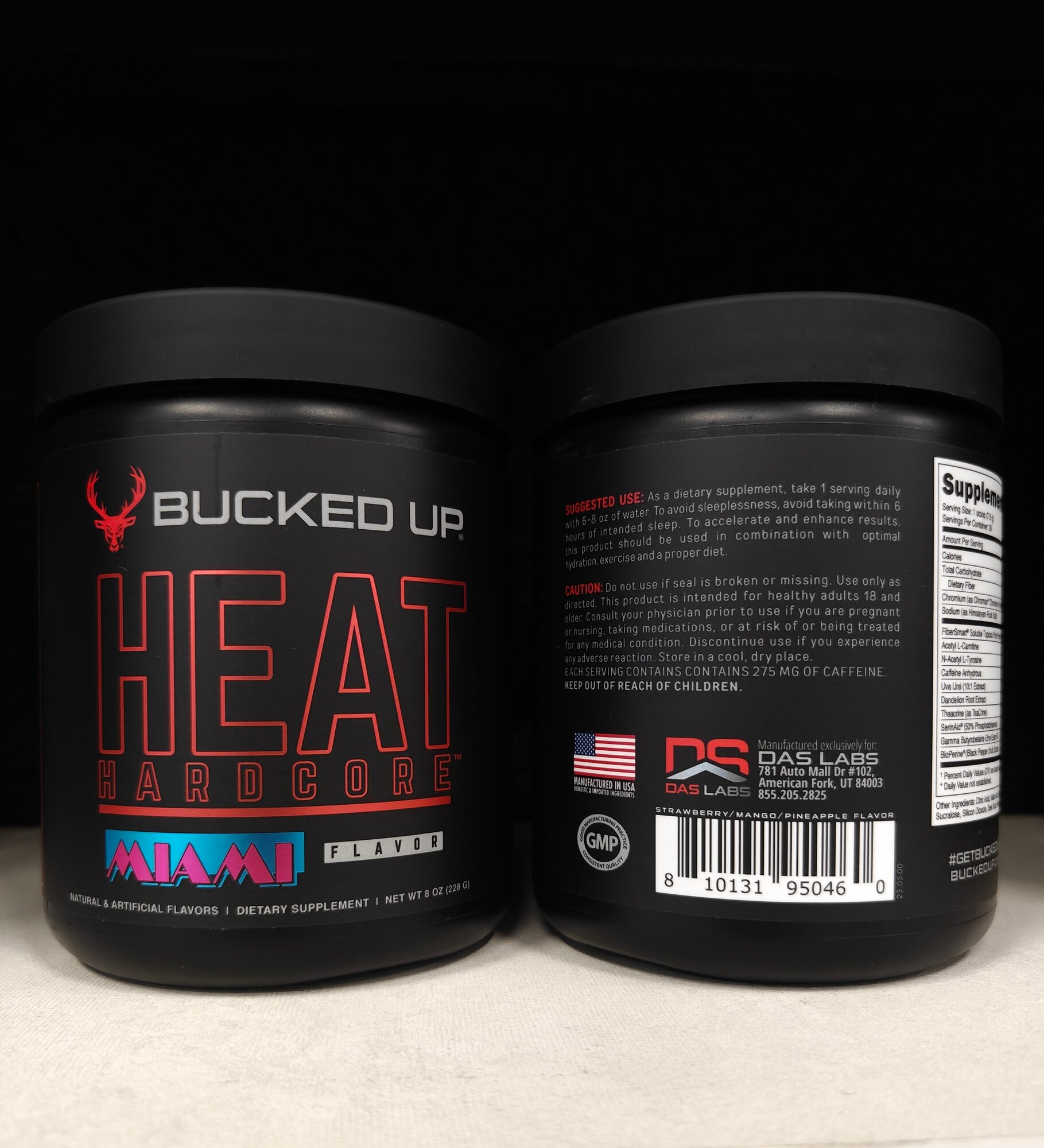 Купить BUCKED UP, HEAT Hardcore, PREMIUM жиросжигатель, вкус Miami (клубника, манго, ананас), 228 г (30 порций)
