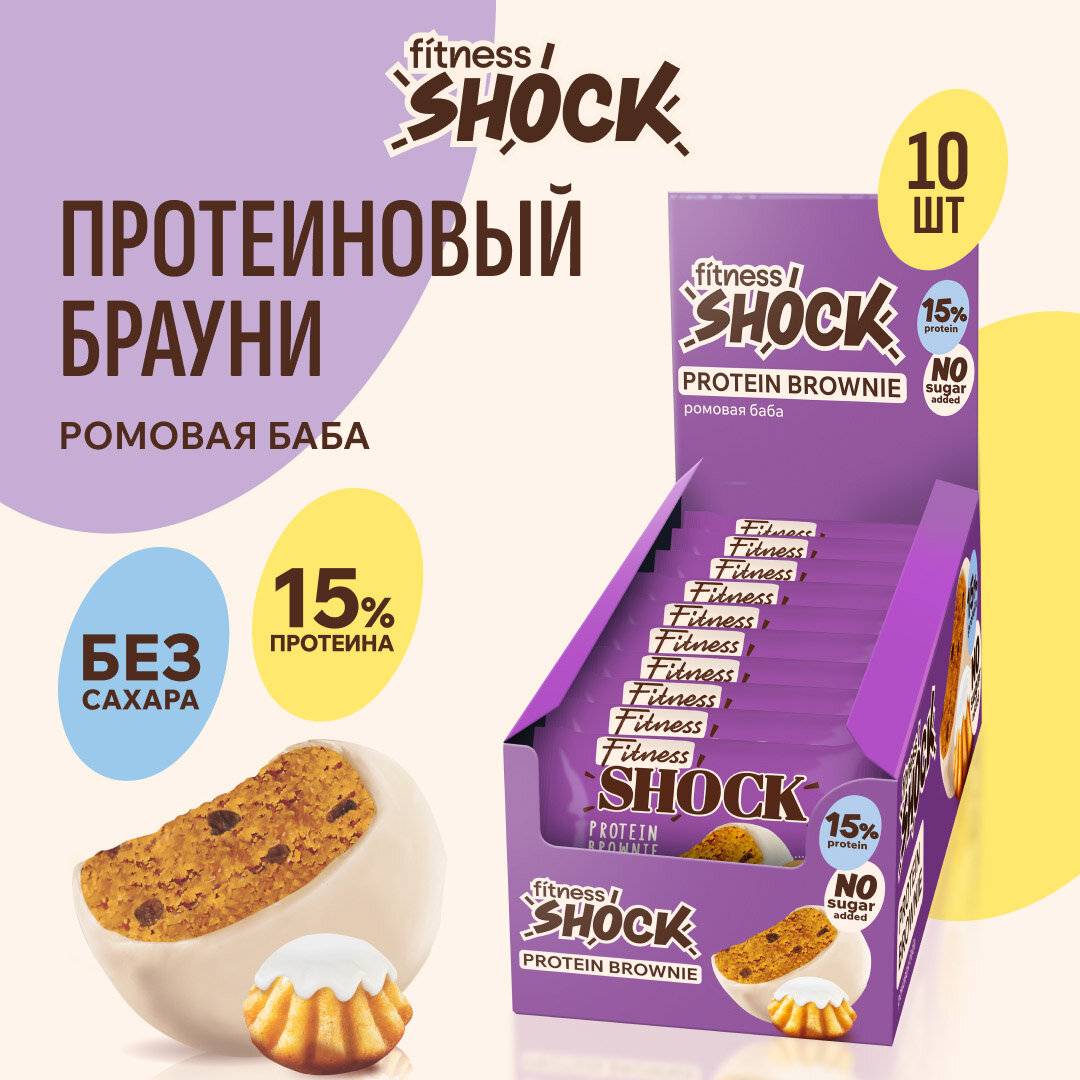 Купить Протеиновое печенье Брауни без сахара "Ромовая баба" FitnesSHOCK, 10 шт