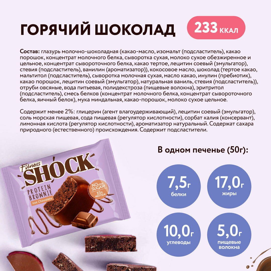 Протеиновое печенье без сахара Брауни Горячий шоколад FitnesSHOCK бисквит, брауни без сахара, 50 г х 10 шт