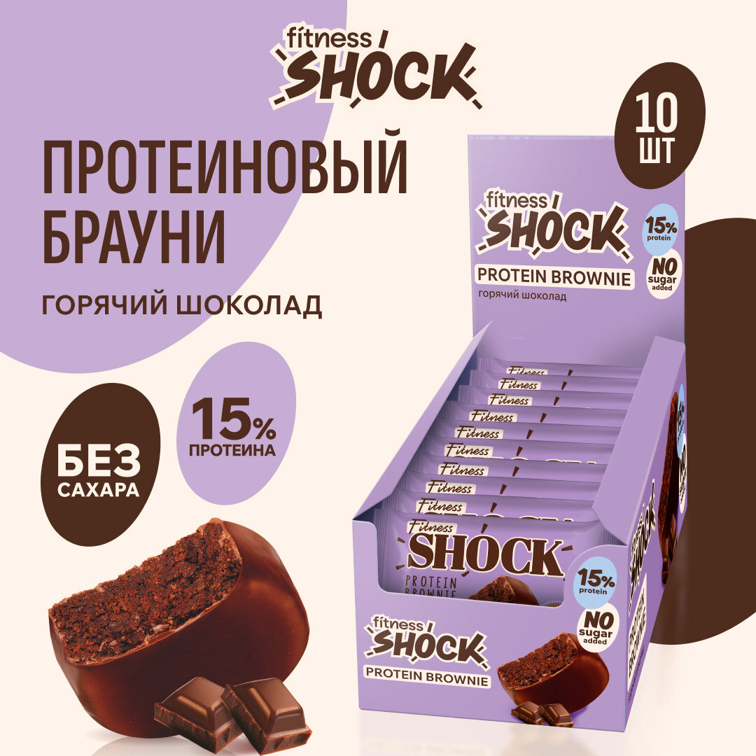 Купить Протеиновое печенье без сахара Брауни Горячий шоколад FitnesSHOCK бисквит, брауни без сахара, 50 г х 10 шт