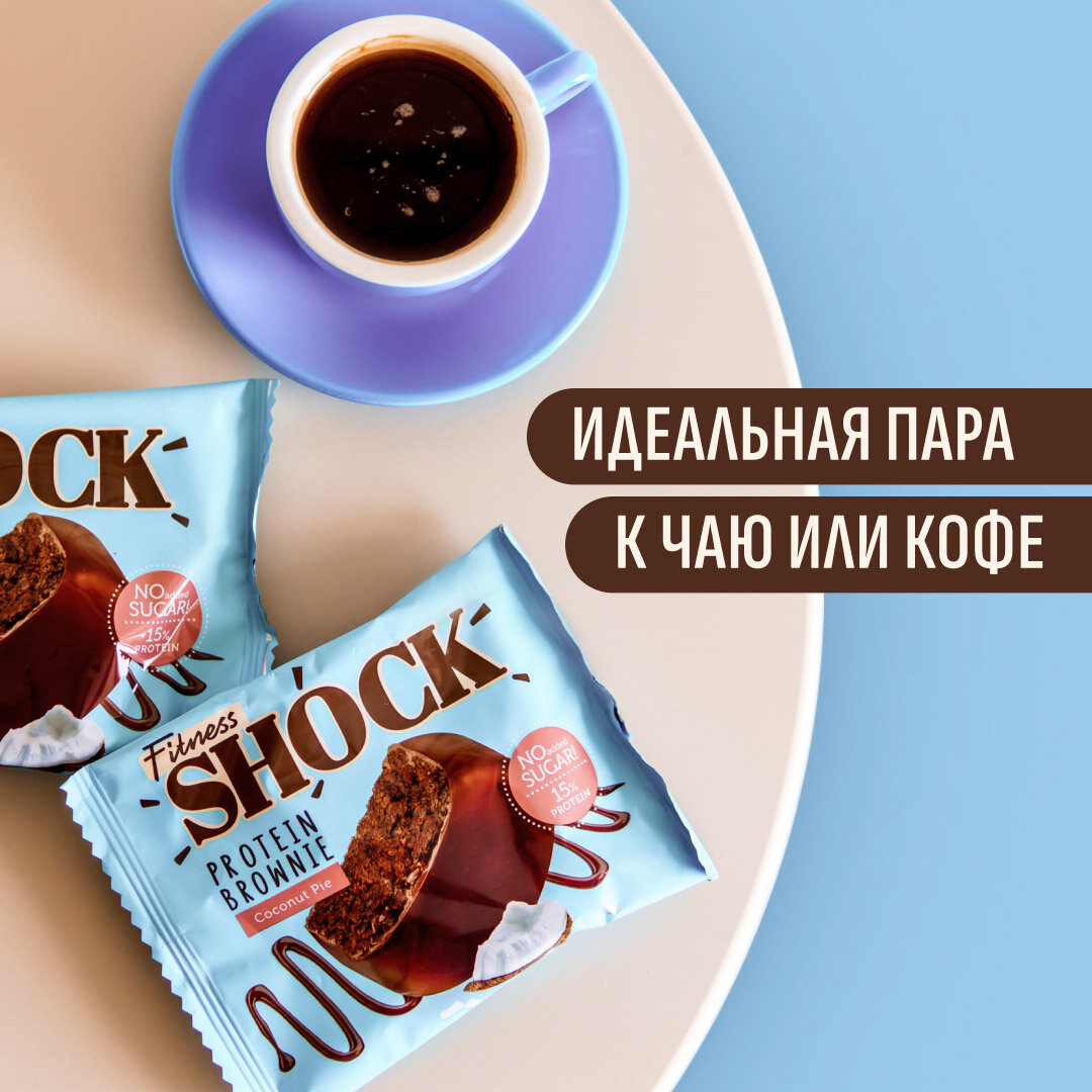 Купить Протеиновое печенье без сахара Брауни Кокосовый пирог FitnesSHOCK бисквит, брауни без сахара, 50 г х 10 шт