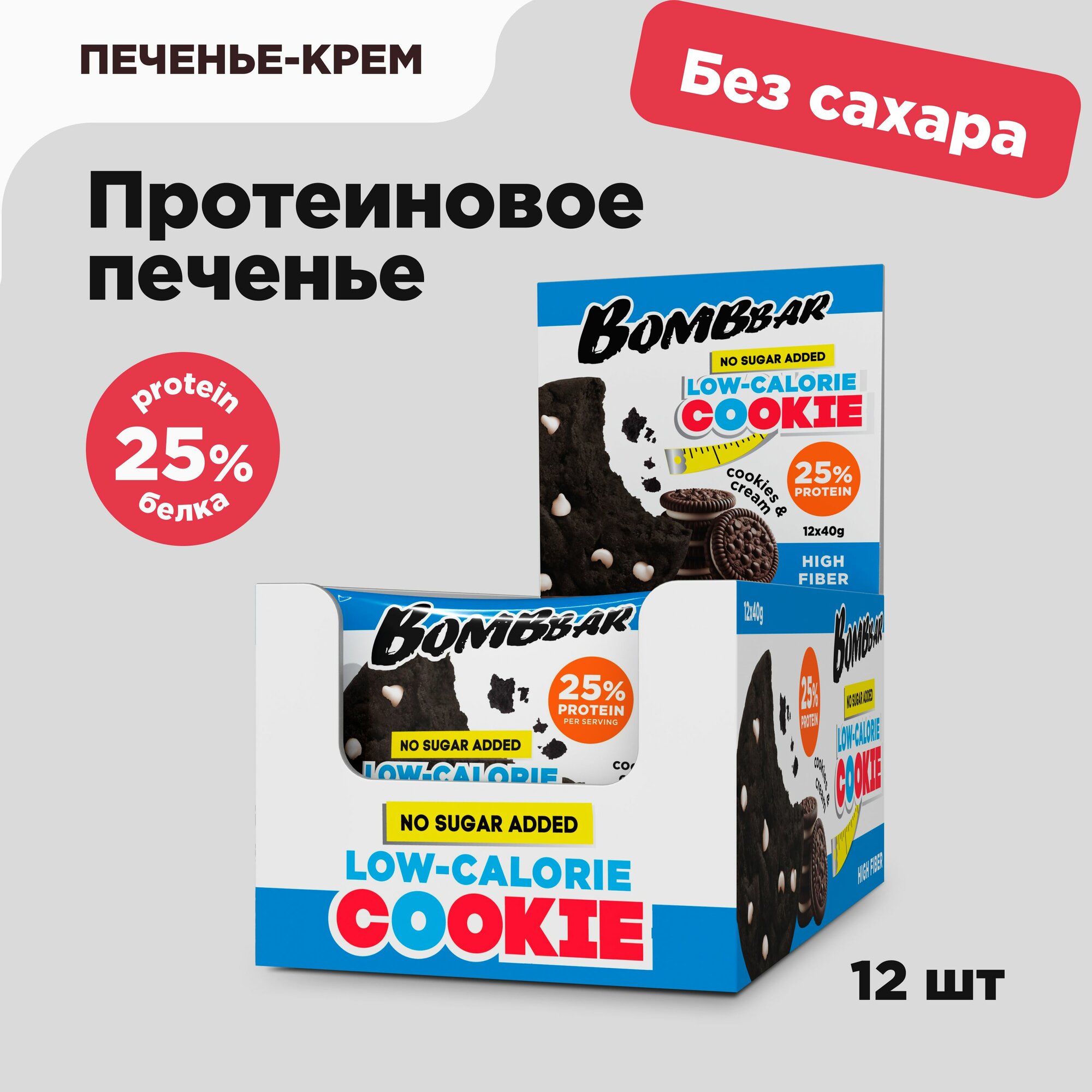 Низкокалорийное протеиновое печенье без сахара BOMBBAR Protein Cookie, Печенье-крем, 12 шт по 40 г