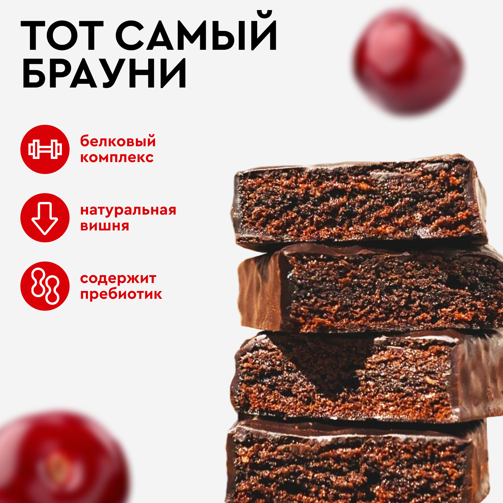 Печенье протеиновое без сахара Брауни ProteinRex Вишня 8 шт х 50 г, спортпит