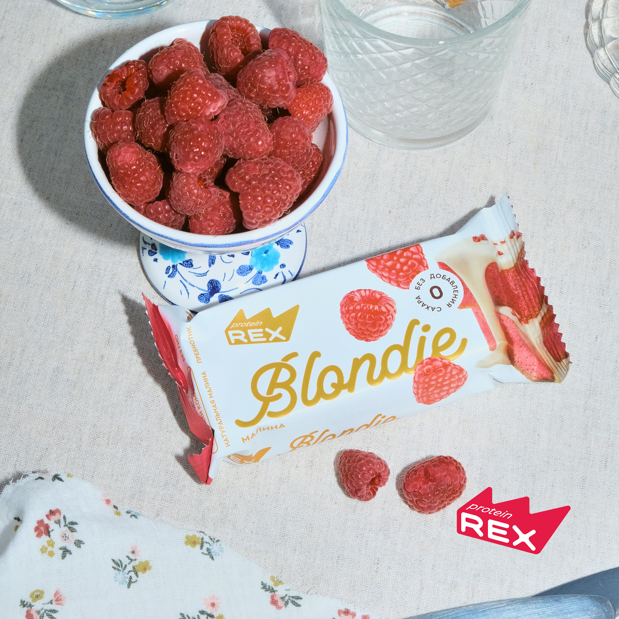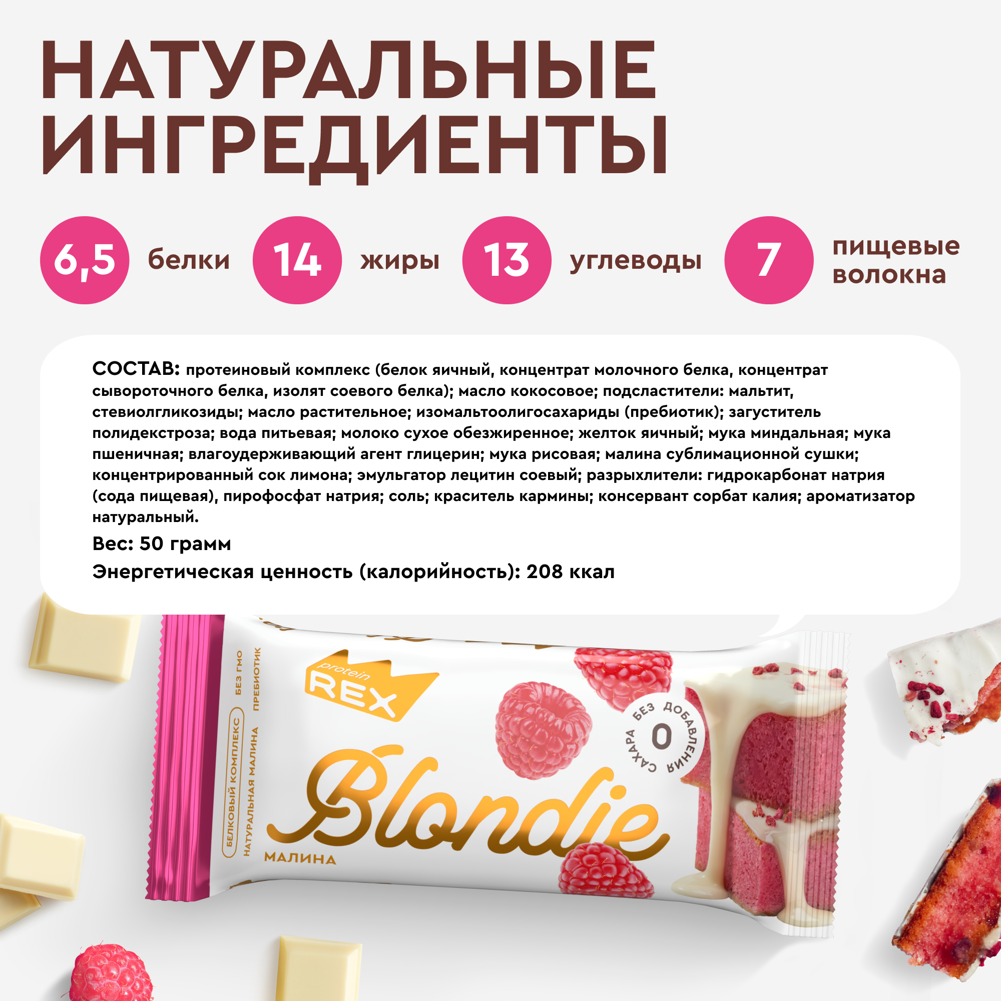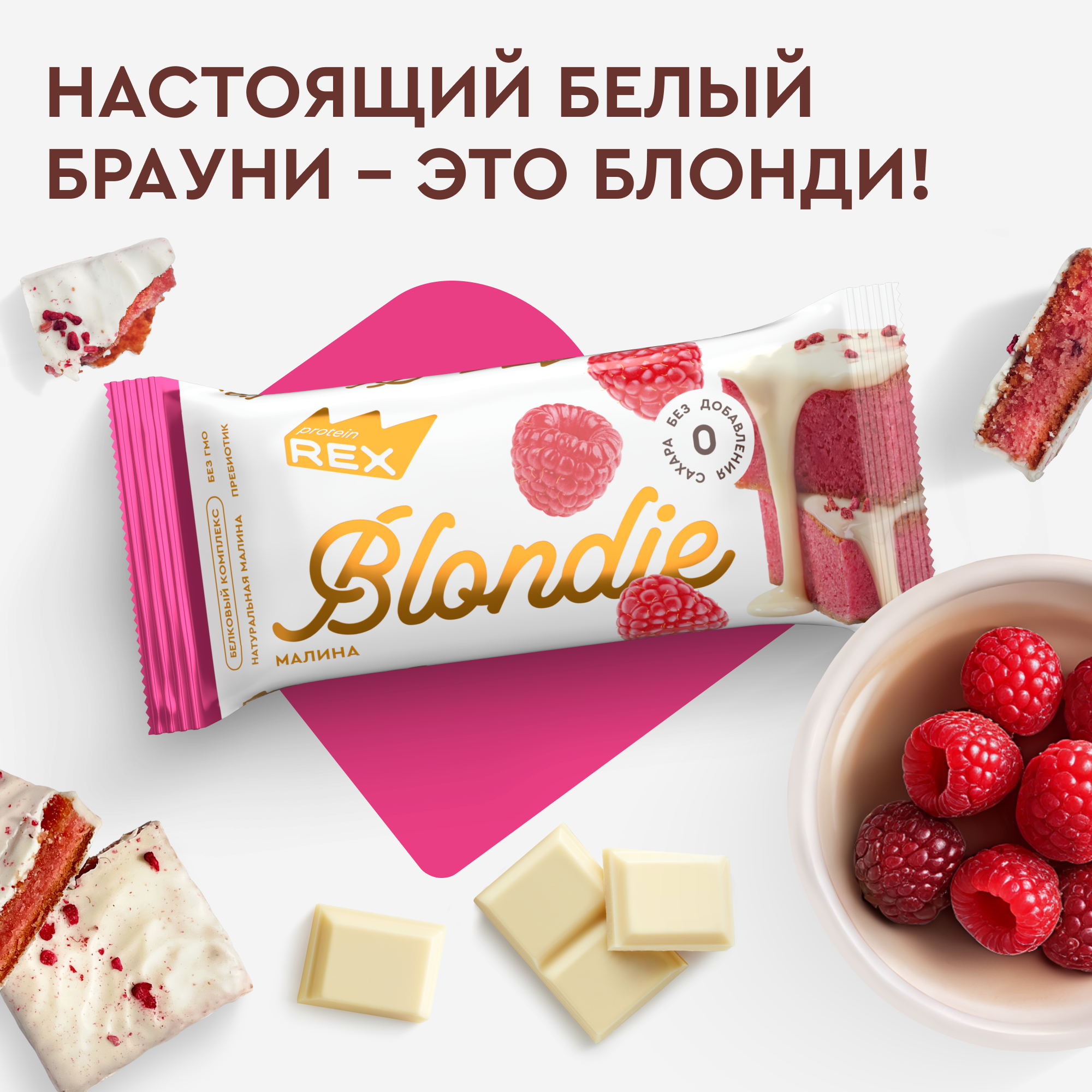 Купить Протеиновое печенье без сахара Брауни ProteinRex Блонди Малина 12 шт х 50 г, спортивное питание