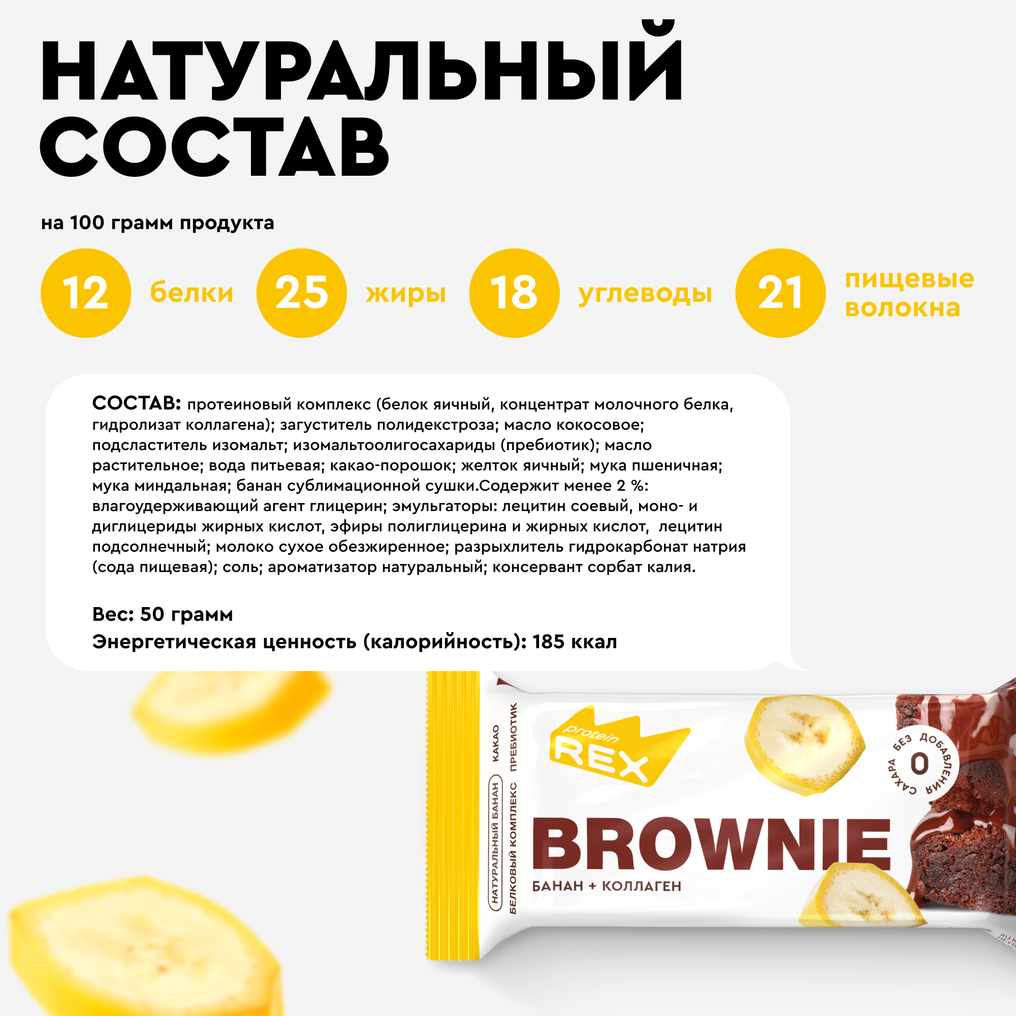 Печенье протеиновое без сахара Брауни ProteinRex Банан с коллагеном 8 шт х 50 г, спортпит