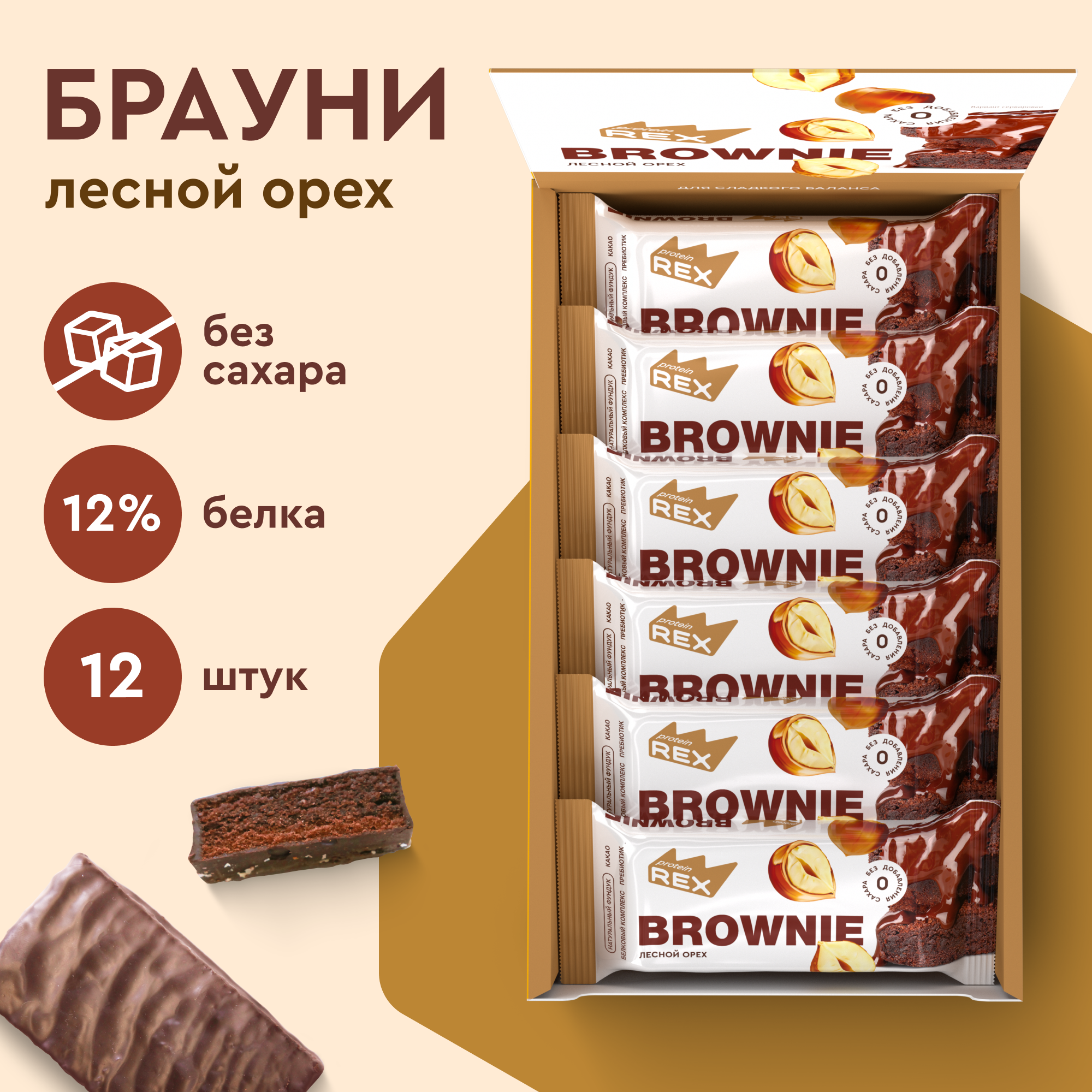 Пирожное протеиновое без сахара Брауни ProteinRex Шоколад 12 шт х 50 г, батончики, пирожное, десерты, ПП сладости для похудения