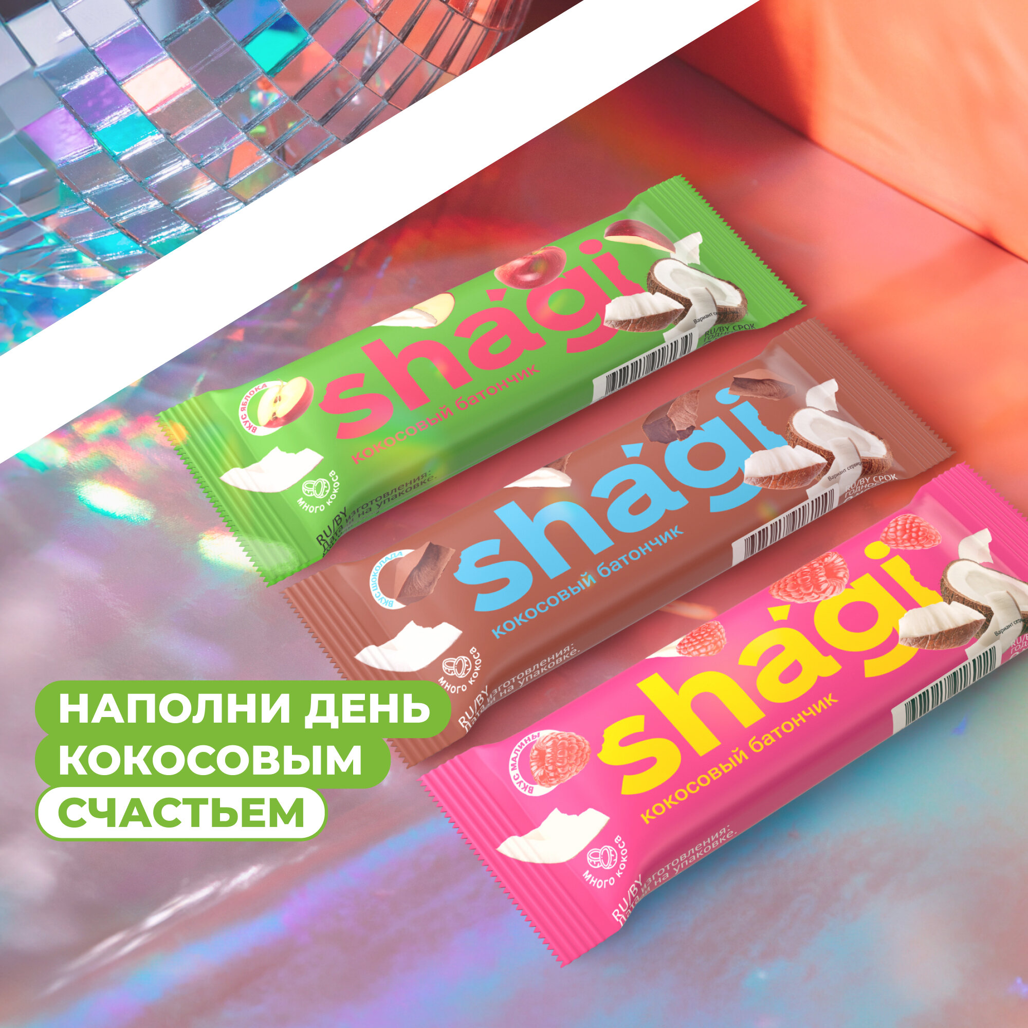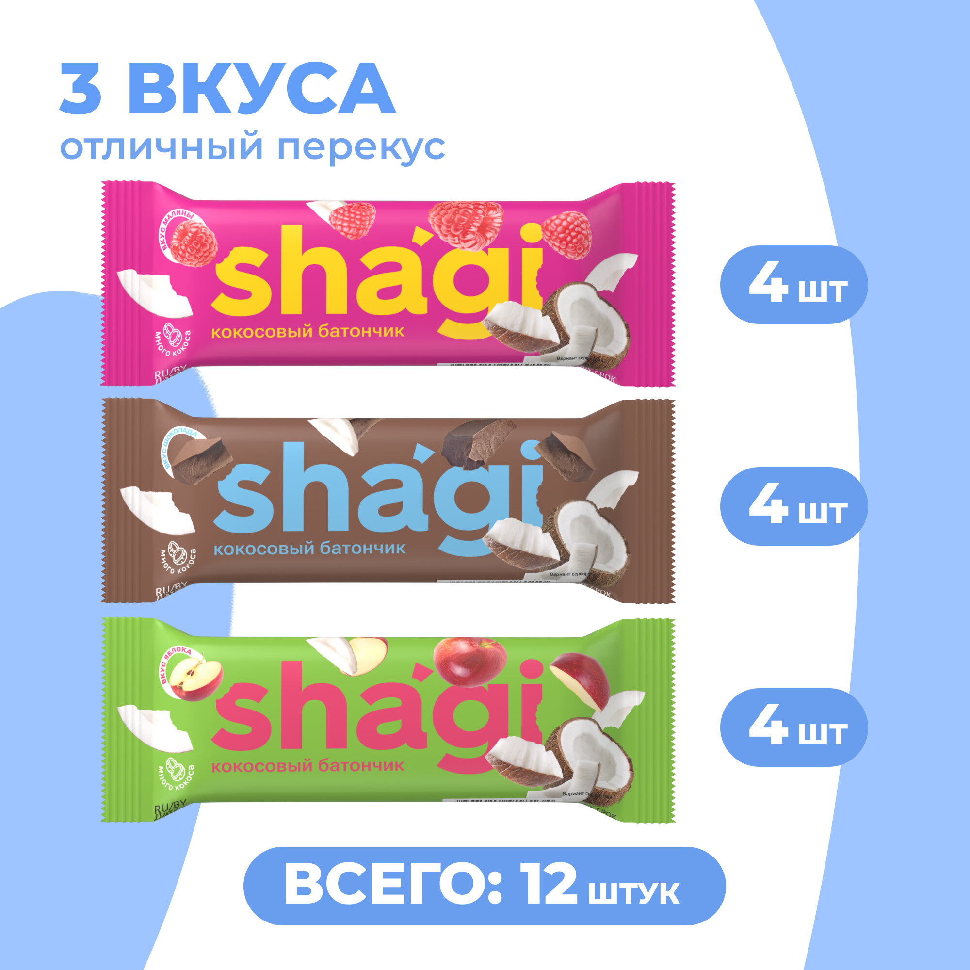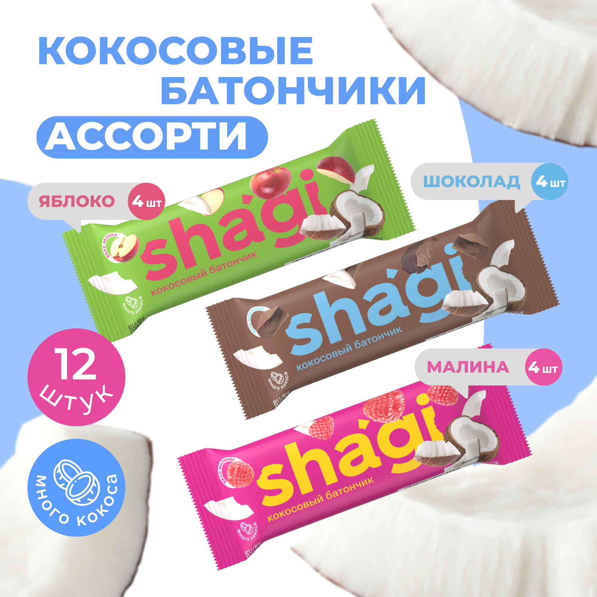 Батончик кокосовый Shagi яблоко, 40 гр х 15 шт, спортпит, пп, полезные сладости, спорт, десерты