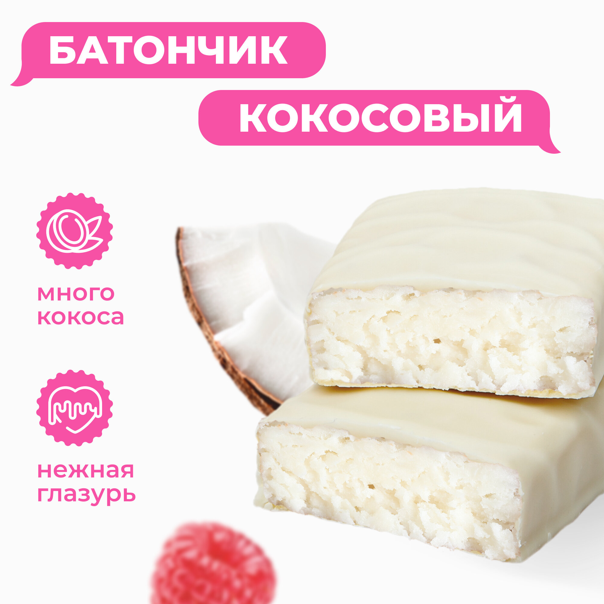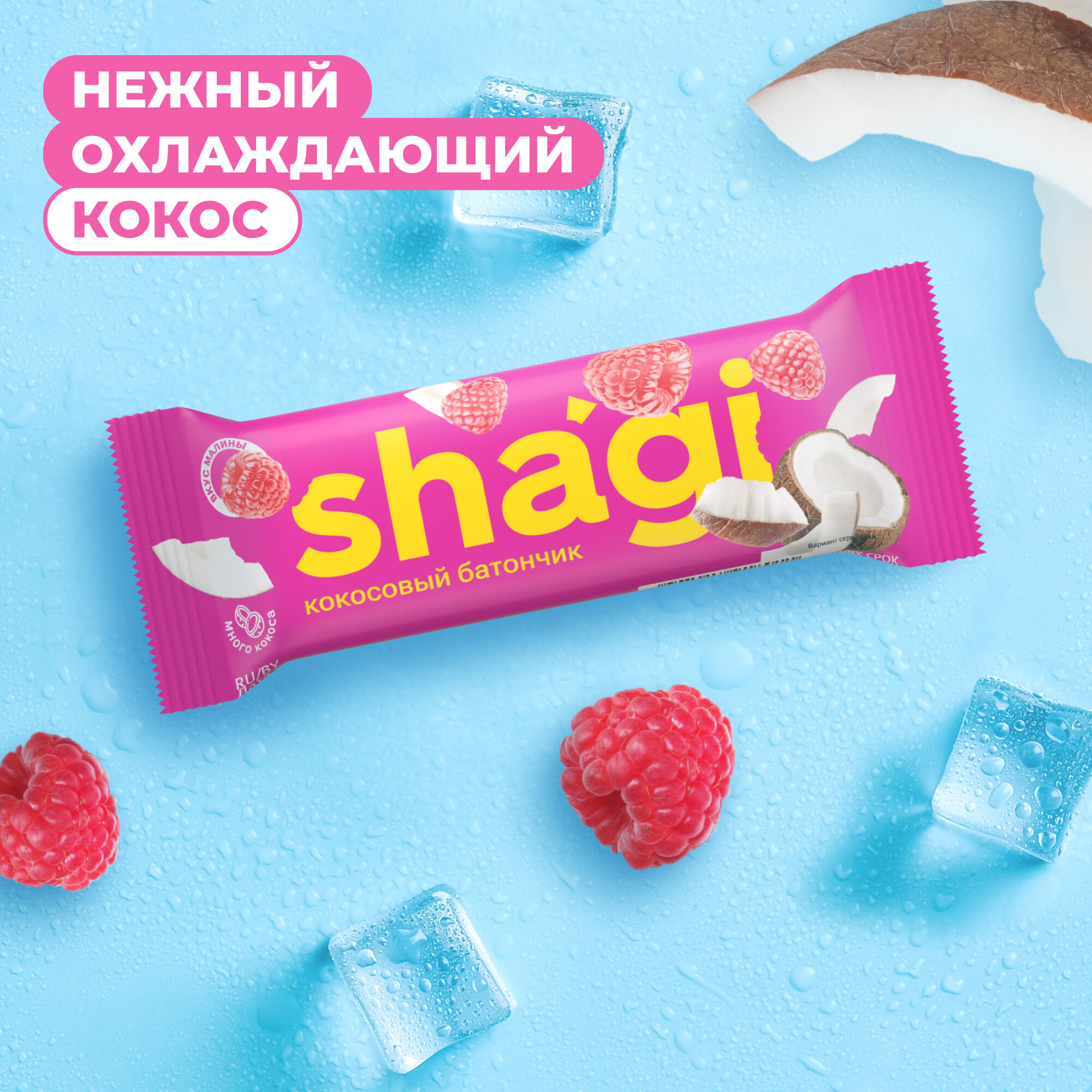 Купить Батончик кокосовый Shagi Малина, 40 гр х 15 шт, спортпит, пп, полезные сладости, спорт, десерты