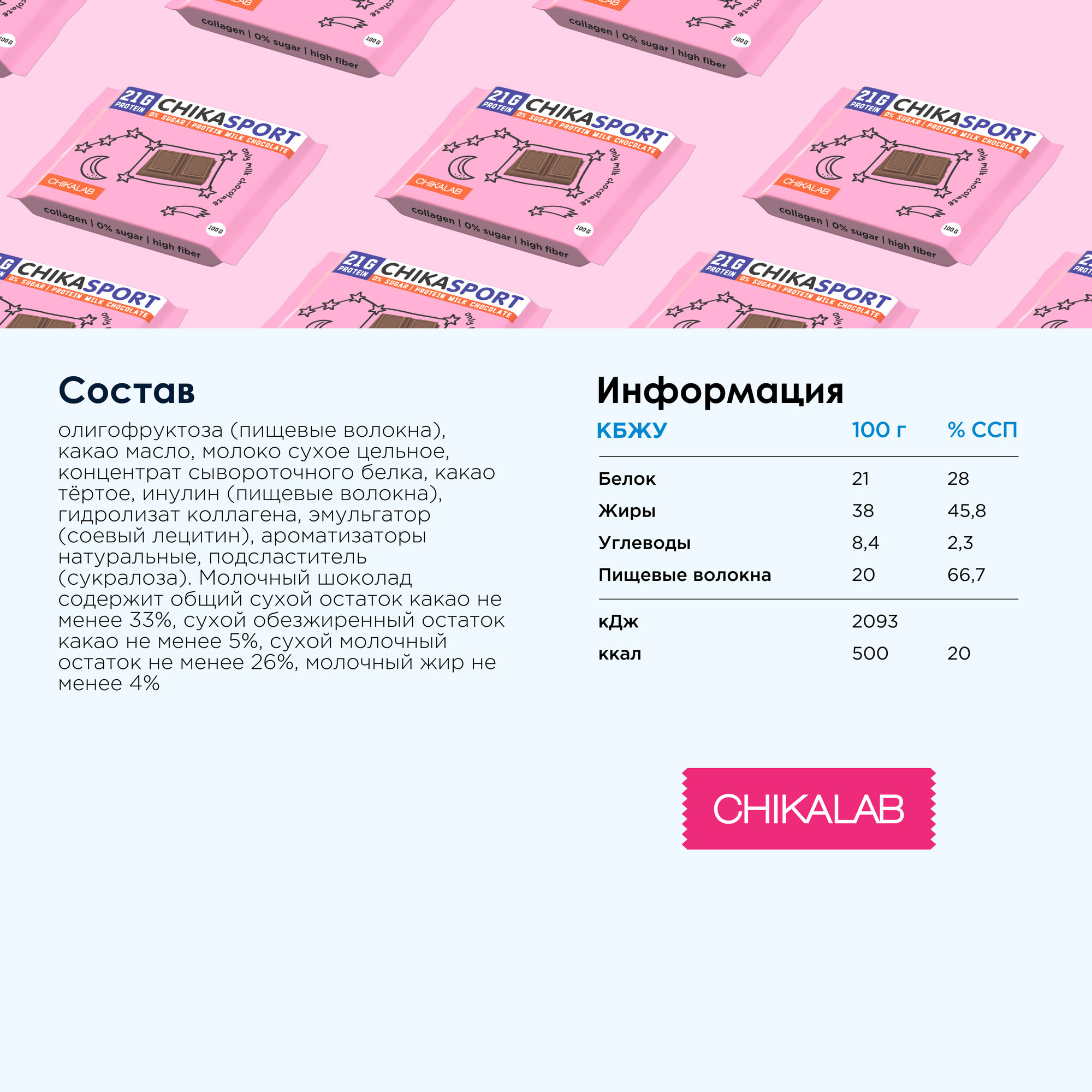 Протеиновый шоколад без сахара ChikaSport молочный 100 гр (5 шт)