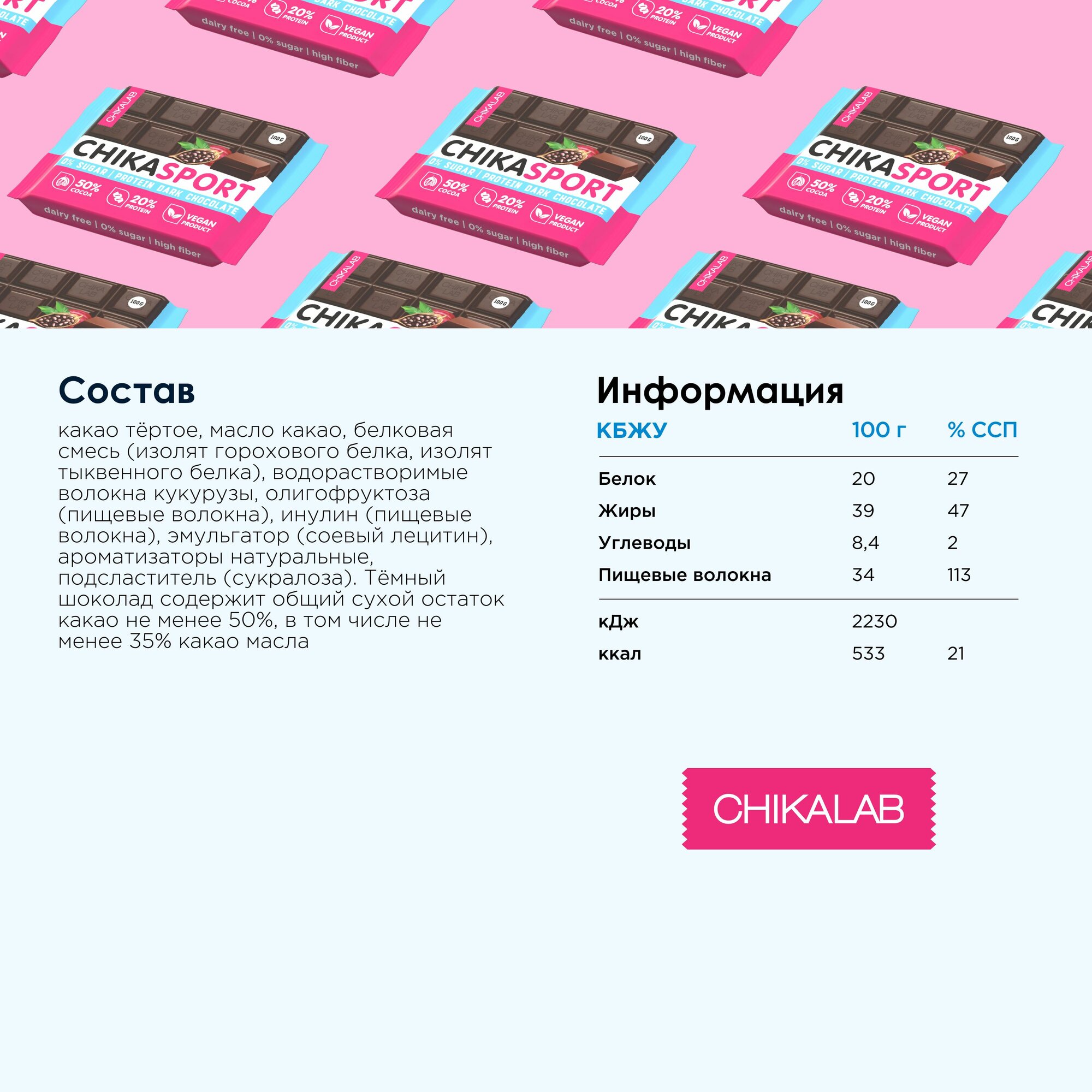 CHIKALAB Протеиновый шоколад без сахара с шоколадной начинкой, 4шт х 100г