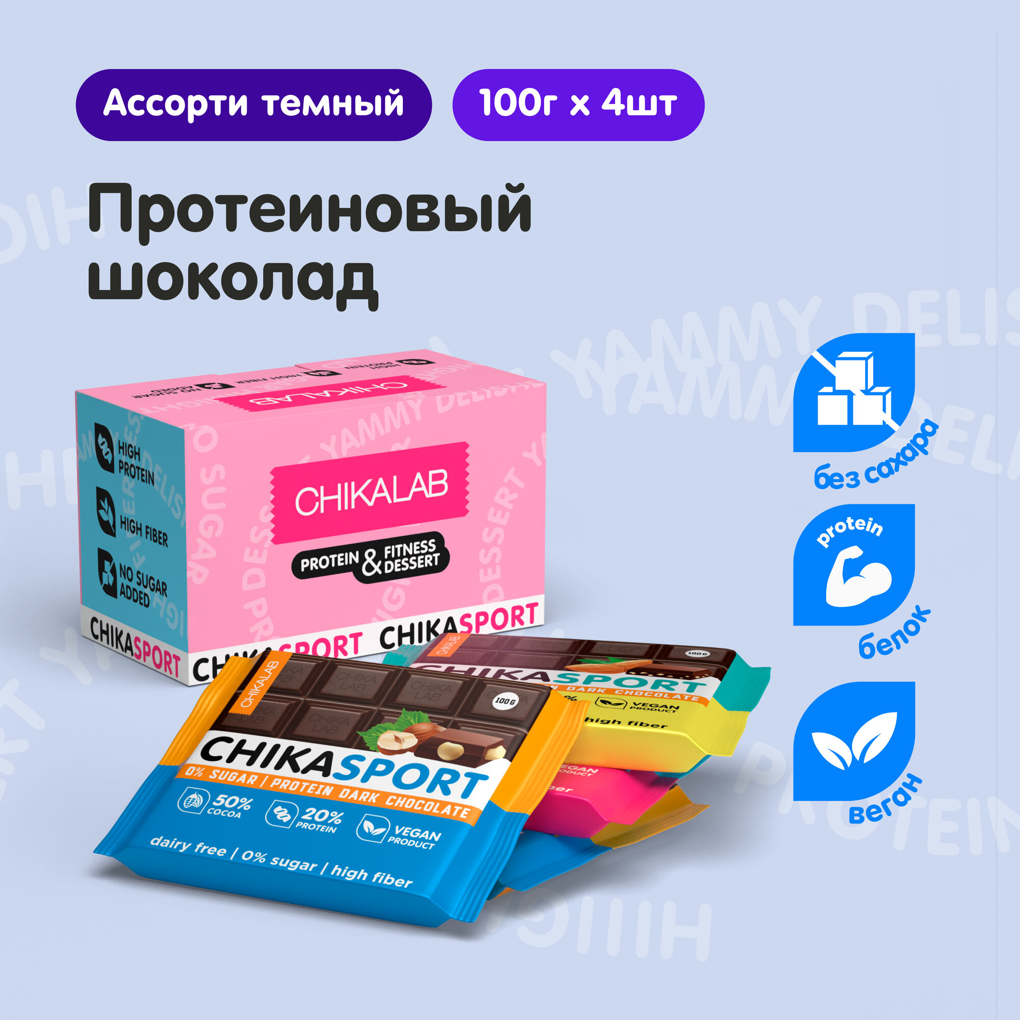 Купить CHIKALAB Протеиновый темный шоколад без сахара Ассорти Микс, 4шт х 100г