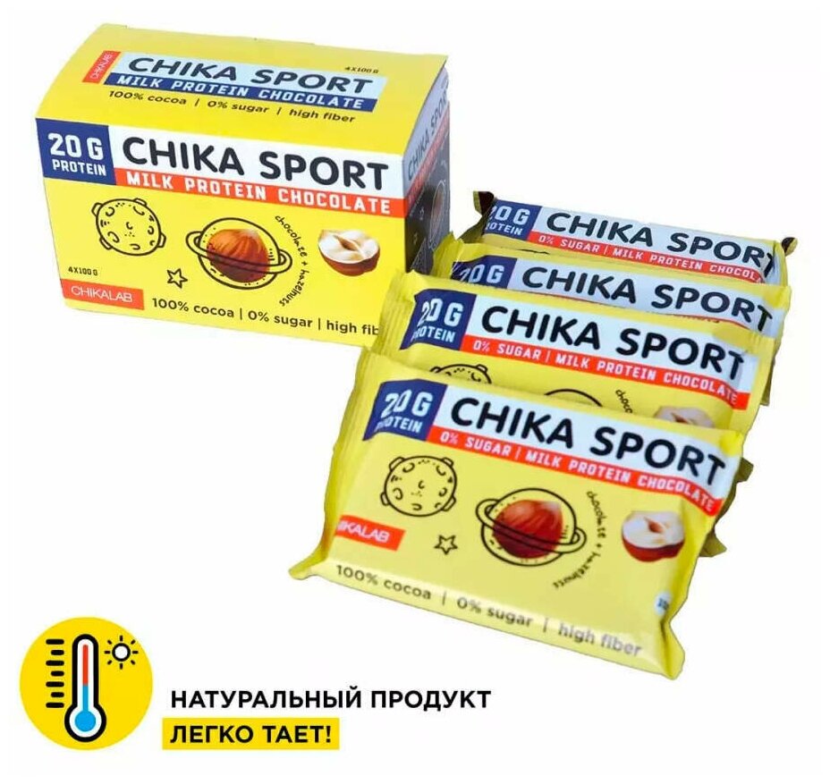 CHIKALAB Протеиновый молочный шоколад без сахара, 4шт х 100г