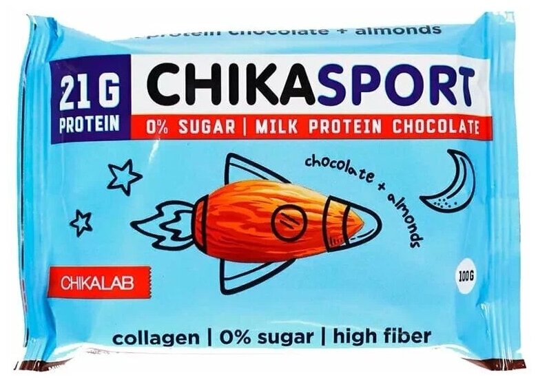Купить CHIKALAB Протеиновый молочный шоколад с миндалем 100 гр