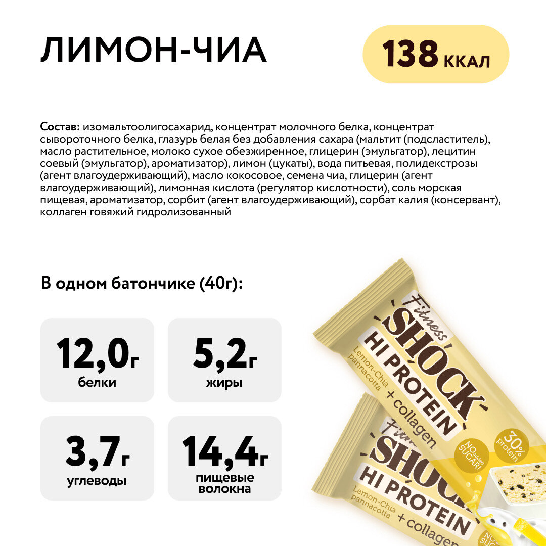 Протеиновые батончики без сахара Лимон-чиа FitnesSHOCK 40 гр 12 шт