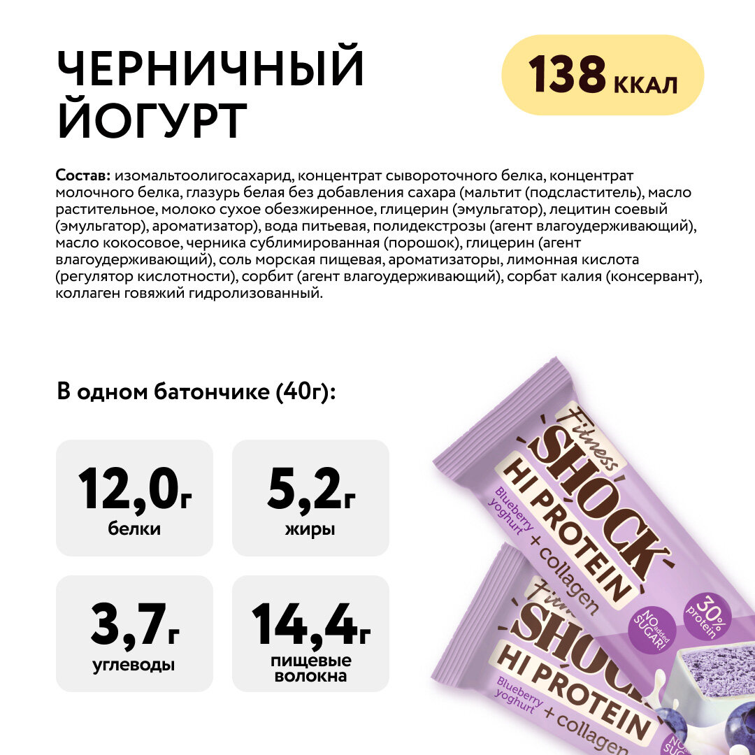 Протеиновые батончики без сахара Черничный Йогурт FitnesSHOCK 40 гр 12 шт