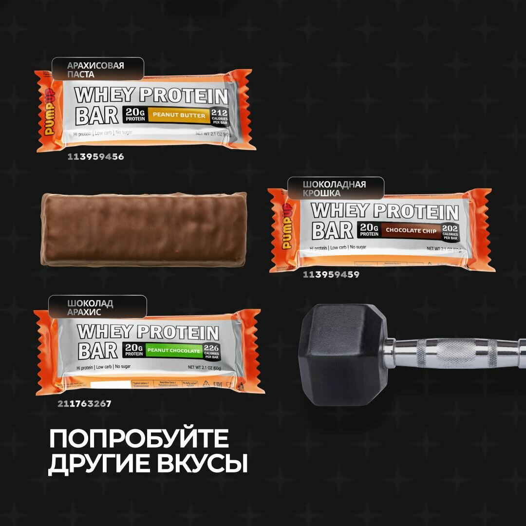 Протеиновые батончики Pump Up/Whey Protein, вкус "Арахис и Шоколад", 12 штук по 60 г