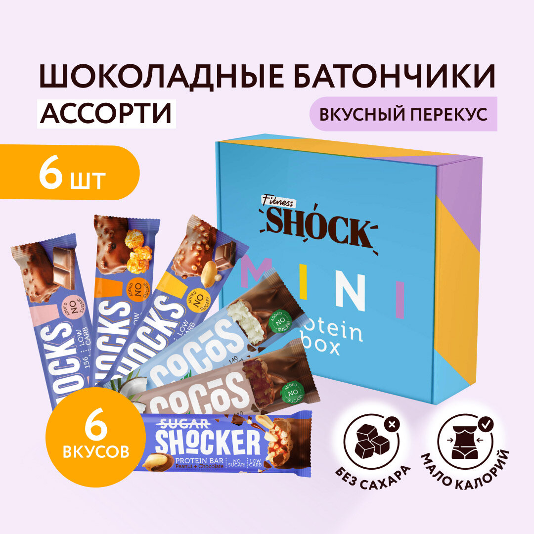 Купить Ассорти батончиков "Вкусный перекус Mini" от бренда FitnesSHOCK - 6 штук по 35 грамм