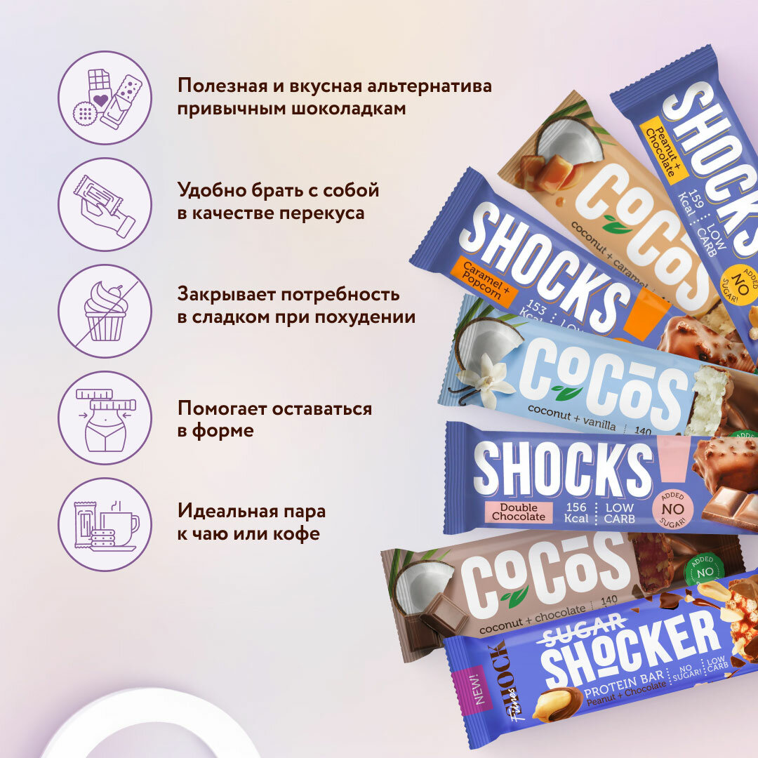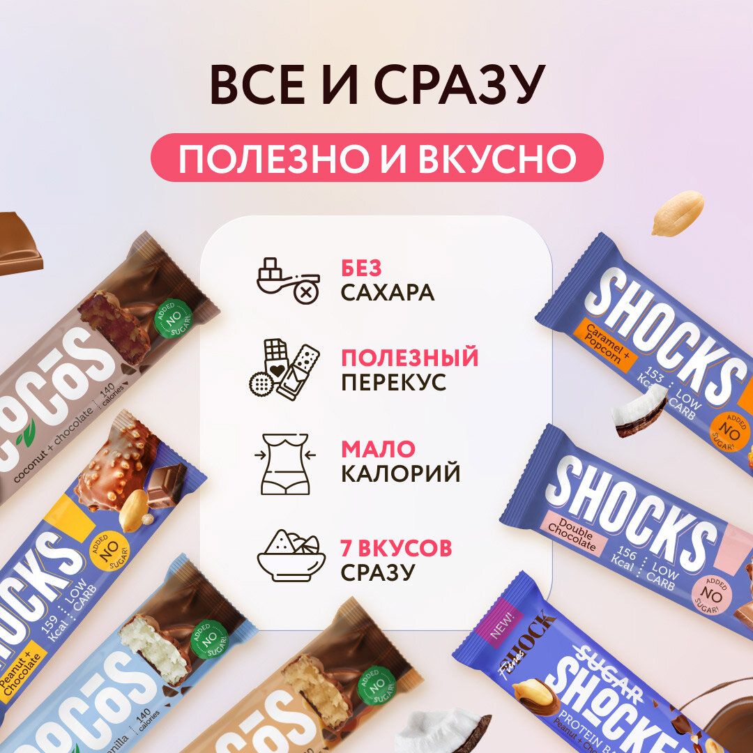 Ассорти батончиков Shoker Face FitnesSHOCK Вкусный перекус макси (35гр*28 шт) интересное: