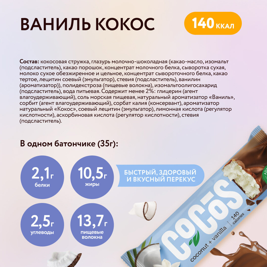 Протеиновые батончики "Кокос" 12 шт PUMP UP Полезное питание , батончик протеиновый с высоким содержанием белка , без сахара .