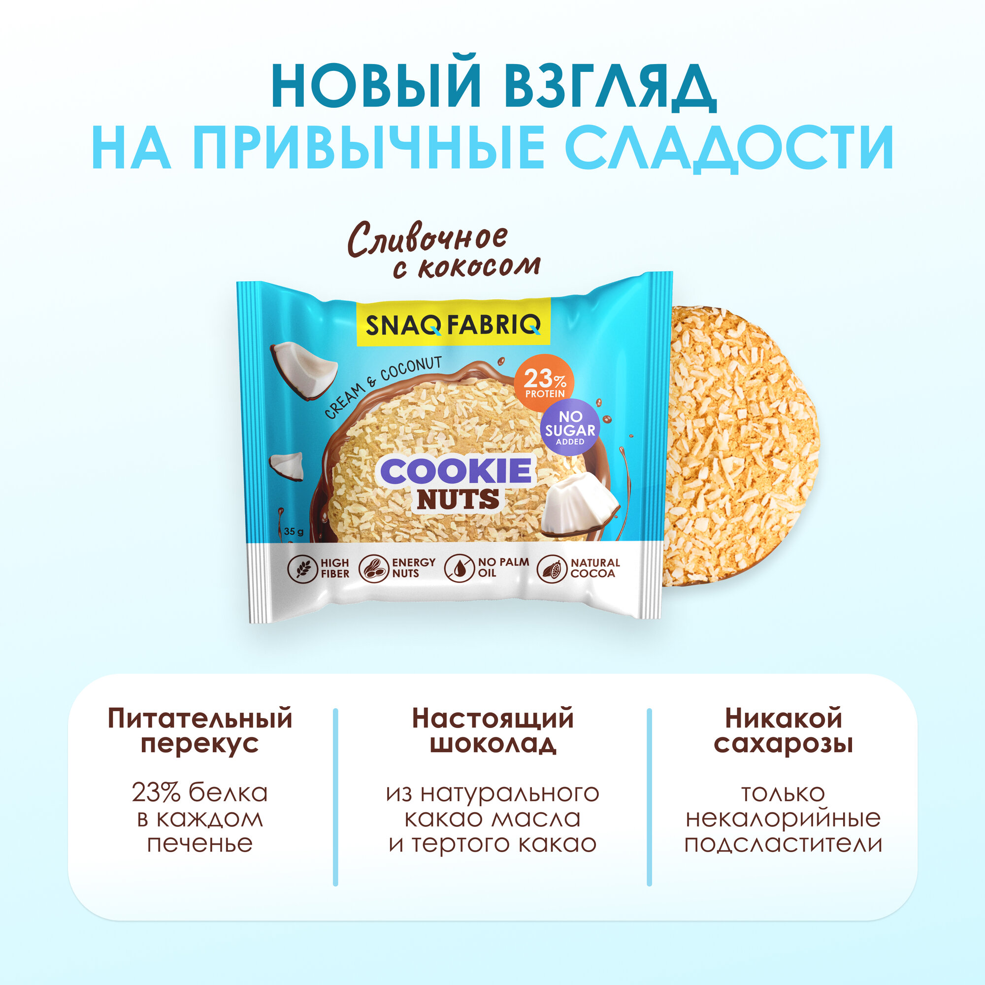 Печенье SNAQ FABRIQ Cookie Nuts, Сливочное с кокосом (12шт по 35г)