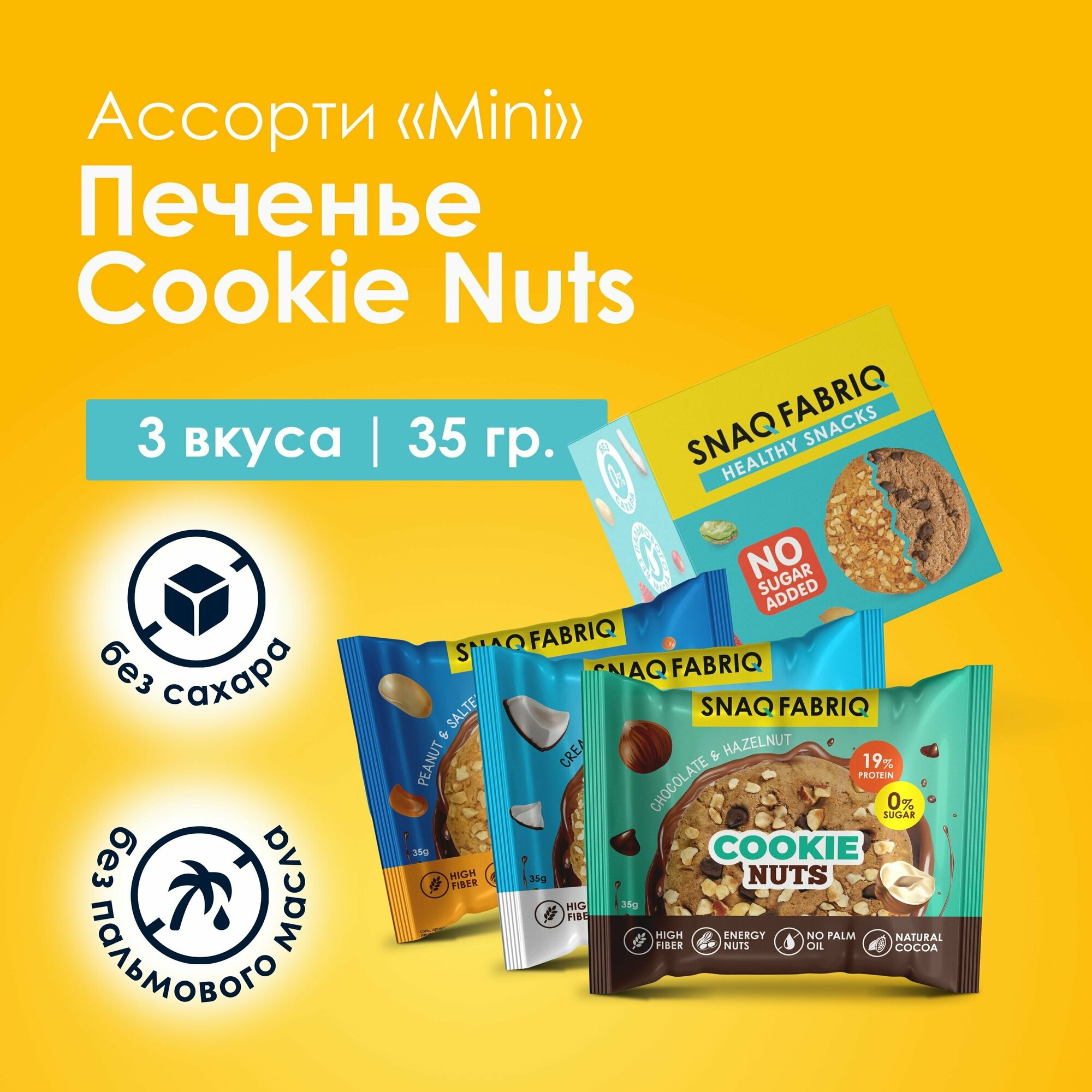 Купить Snaq Fabriq Cookie Nuts Протеиновое печенье без сахара низкокалорийное Ассорти mini, 3шт х 35г