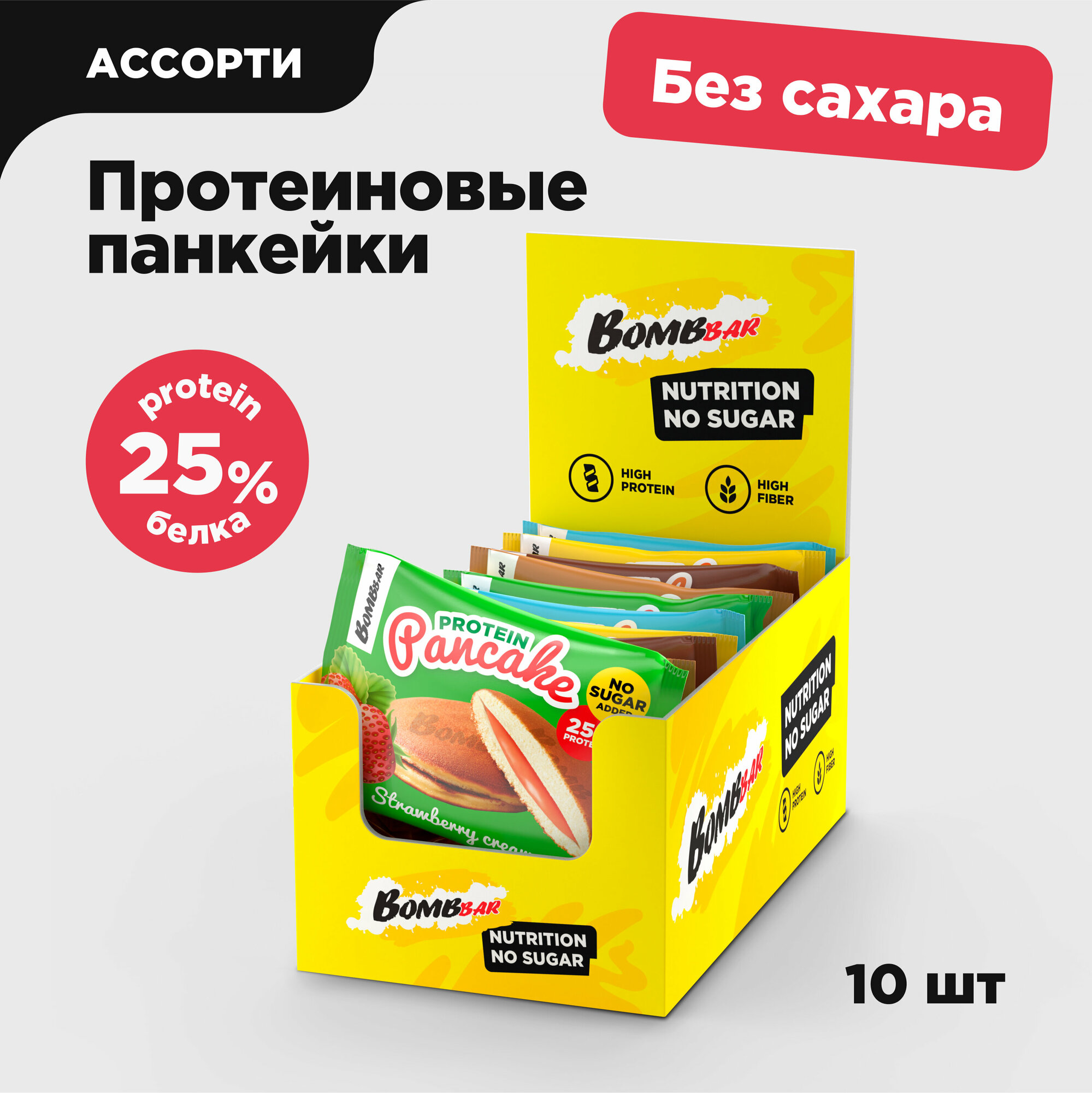 Купить Bombbar Протеиновые печенья (панкейки) с начинкой без сахара "Ассорти", 10шт х 40г