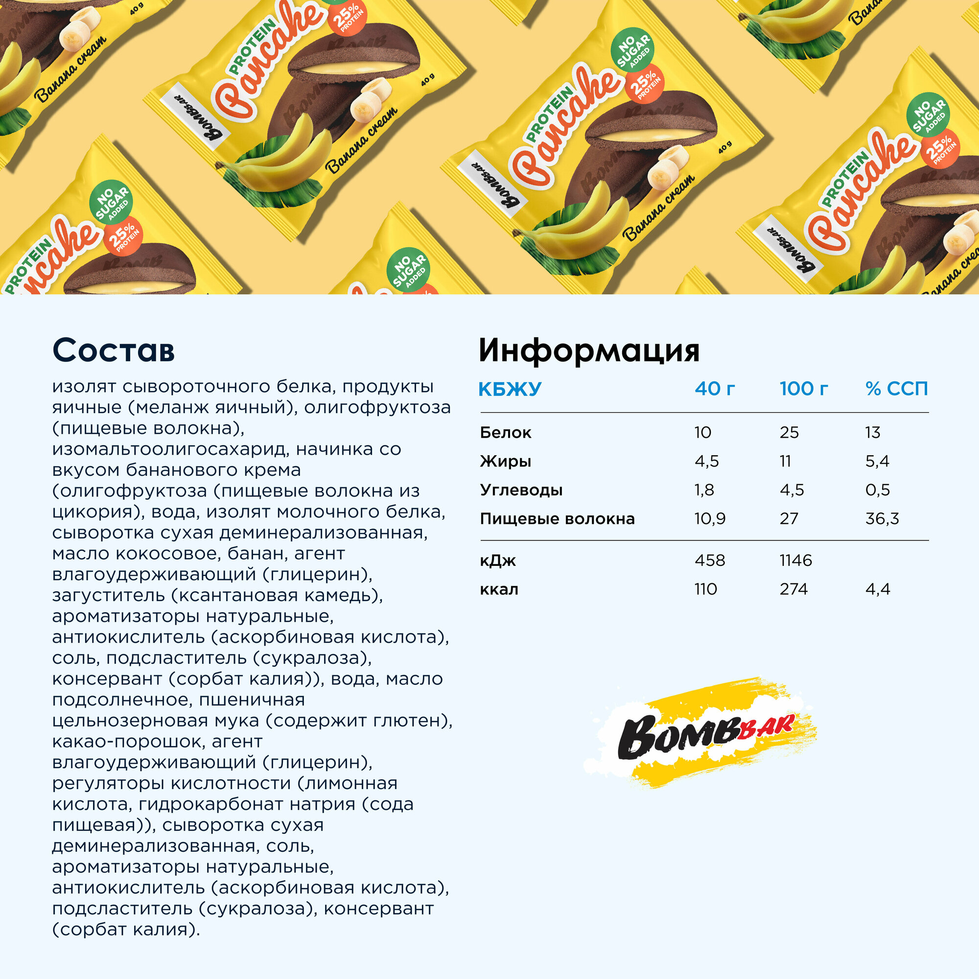 Bombbar Протеиновые печенья (панкейки) с начинкой без сахара "Банановый крем", 10шт х 40г