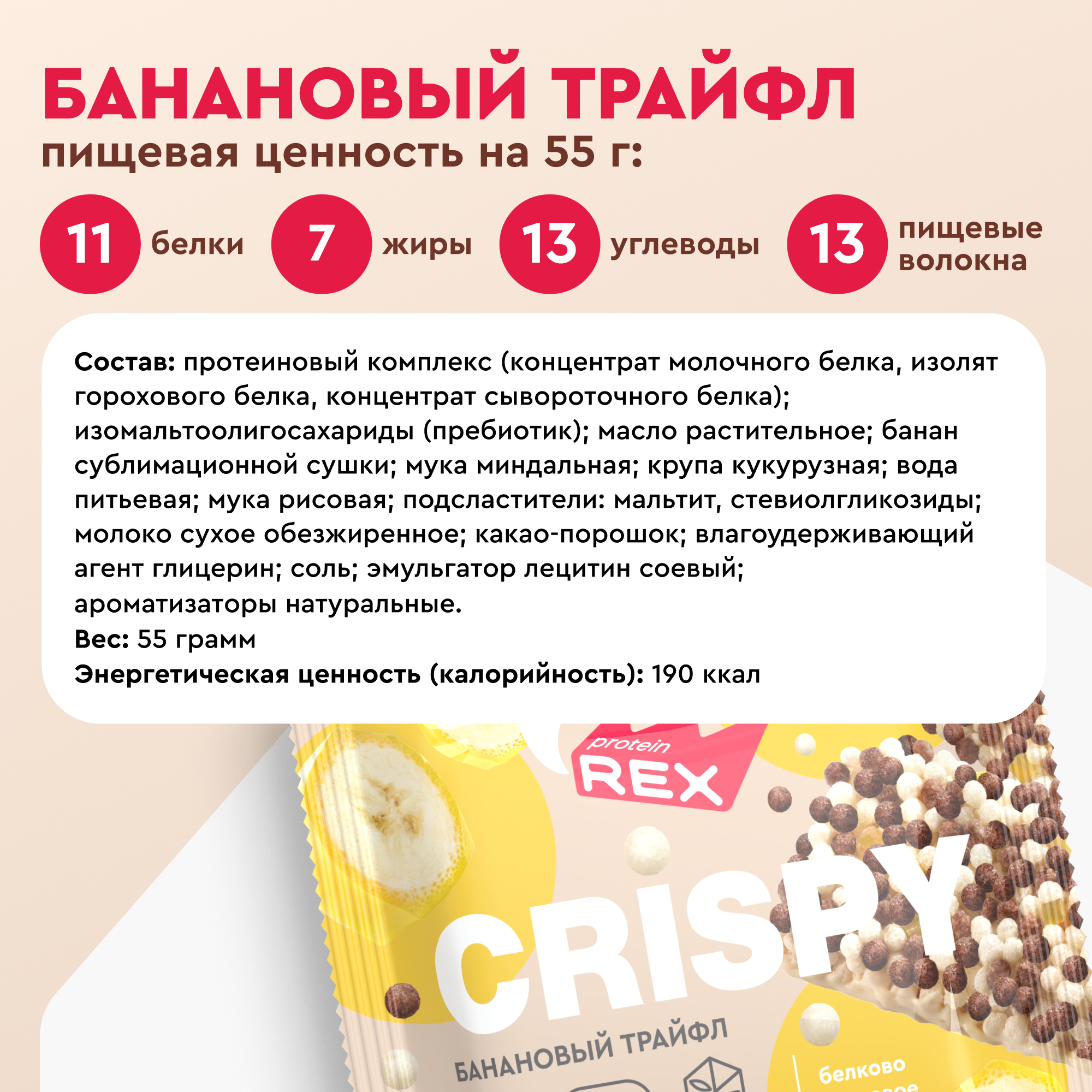 Печенье протеиновое ProteinRex Crispy Банановый трайфл без сахара, 12шт х 55 г, 190 ккал, десерт, спортивное питание, ПП сладости, спортивное печенье