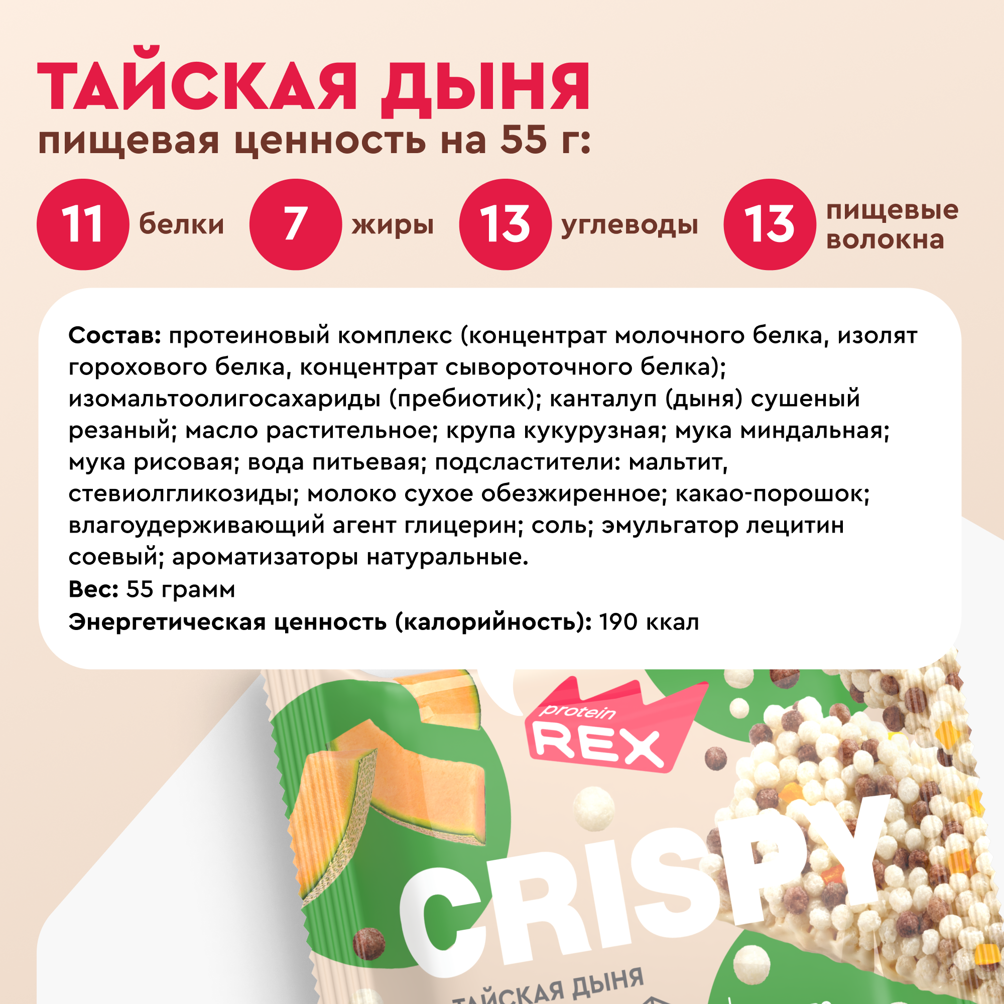 Печенье протеиновое ProteinRex Crispy Тайская дыня без сахара, 12шт х 55 г, 190 ккал, десерт, спортивное питание, ПП сладости, спортивное печенье